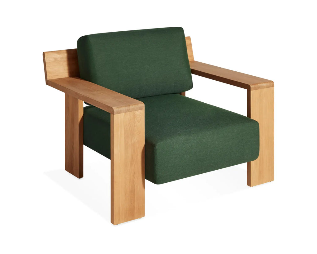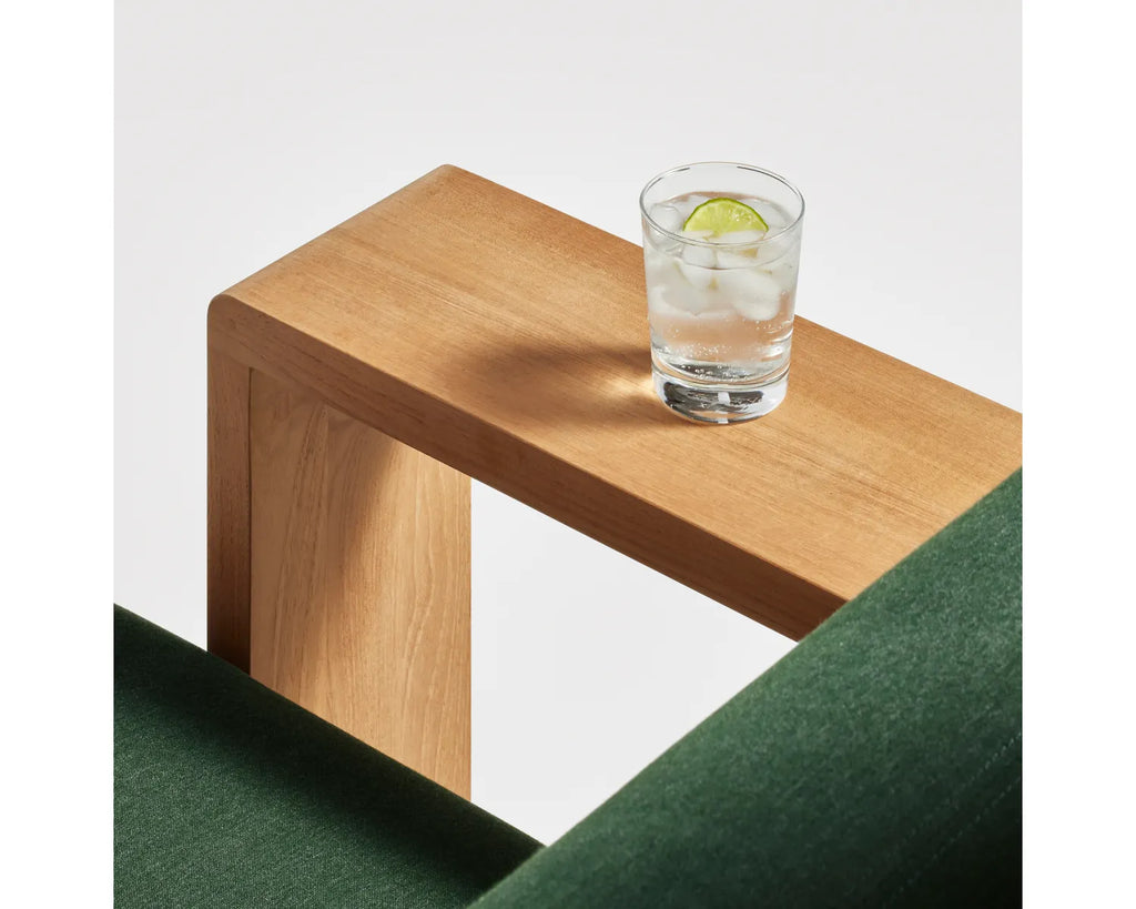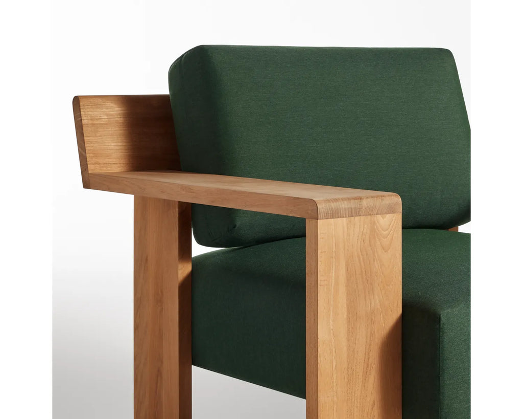 Generous FSC®-certified teak wood planks create a genial space to idle the day away. Wide arms balance your laptop or your Aperol Spritz. Beautiful back detail adds to the scenery while putting you in a perfectly relaxed position. Fixed seat cushion stays in place, just as you’ll be apt to do. Upholstery is dressed for every outdoor occasion in high-performance Sunbrella® fabrics. Pairs well with Ridge Outdoor Sofa.