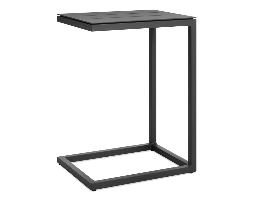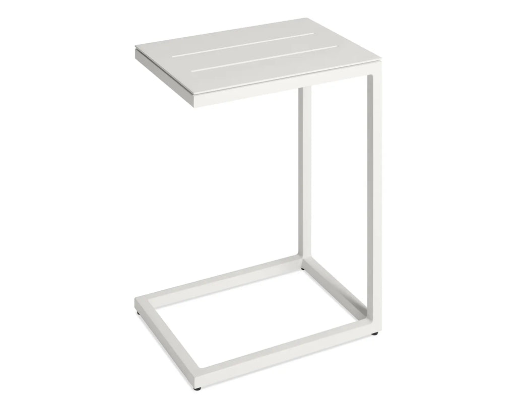 Make your cocktail, sunglasses and steamy beach read come to you. Crisp, cantilevered top lets you keep warm weather accoutrements close at hand. Minimal powder-coated aluminum adds class to the whole laidback situation. Perfect for those who have zero plans to get up anytime in the near future.