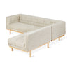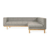 Drawing inspiration from both mid‐century and contemporary influences, the Mulholland Bi‐ Sectional is a tailored design with distinctive tufting on the seat, arms and back that creates subtle character and an attractive, modern aesthetic. With no cushions to adjust, the tuxedo‐ style frame creates an enveloping space where everything stays in place and looks beautiful day after day. This sectional is cleverly designed to allow the chaise to be positioned on the left or the right, so it can adapt to any room layout. Alternatively, the chaise can be easily separated to create a sofa and a free‐floating lounge. An eco‐friendly, solid wood perimeter base with notched‐dowel leg details softens the overall look and adds warmth to the design. All wood inside and out is FSC®‐certified in support of responsible forest management. Part of the Mulholland Series, the Bi‐Sectional matches perfectly with the Mulholland Chair, Sofa and Lounge.
