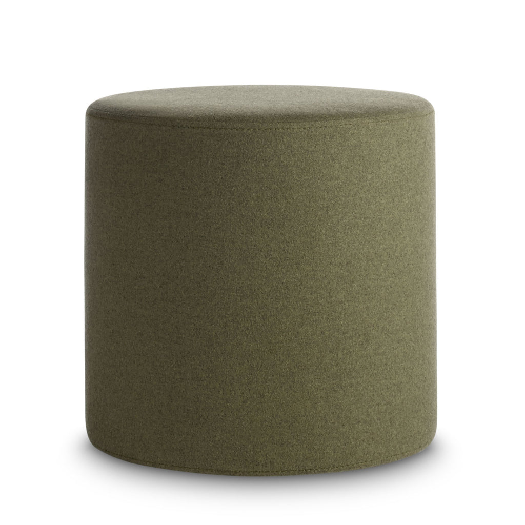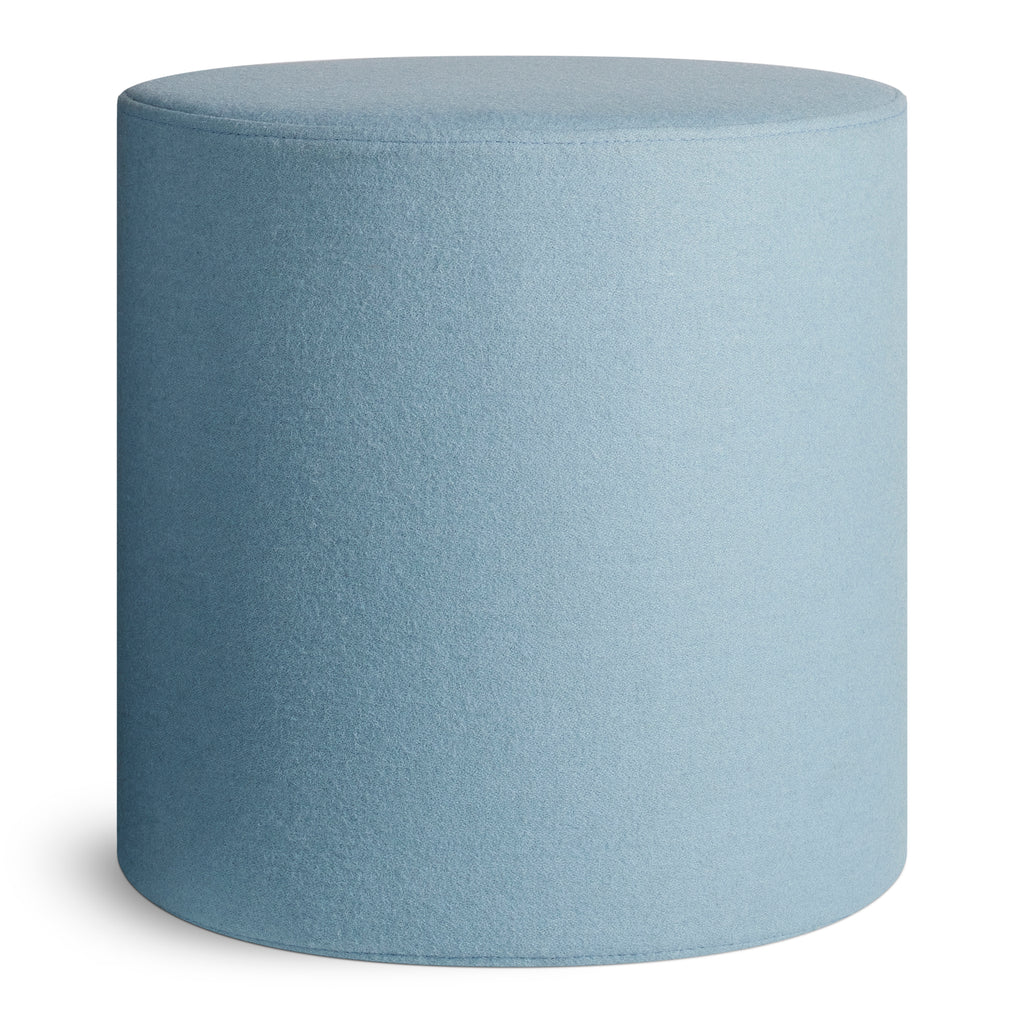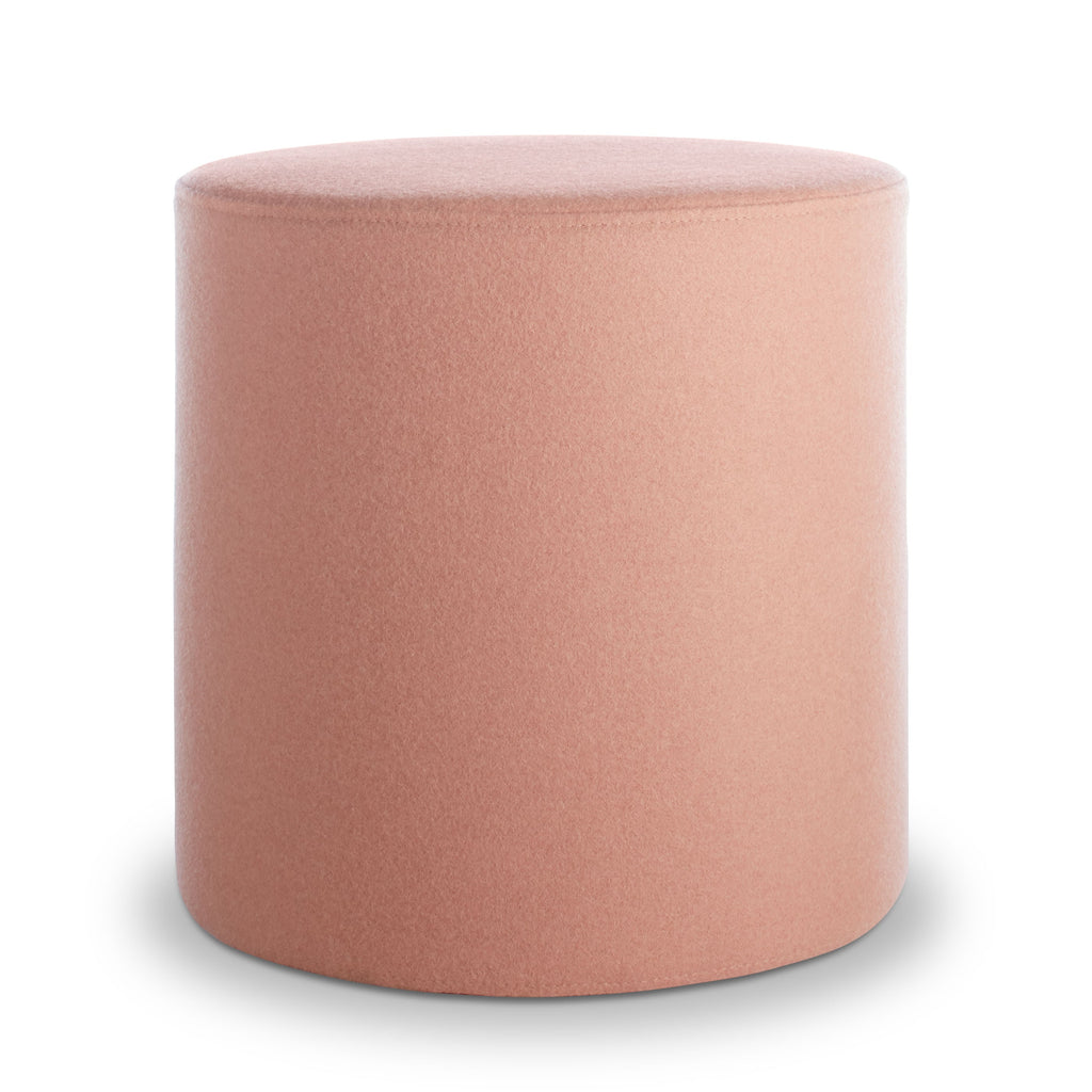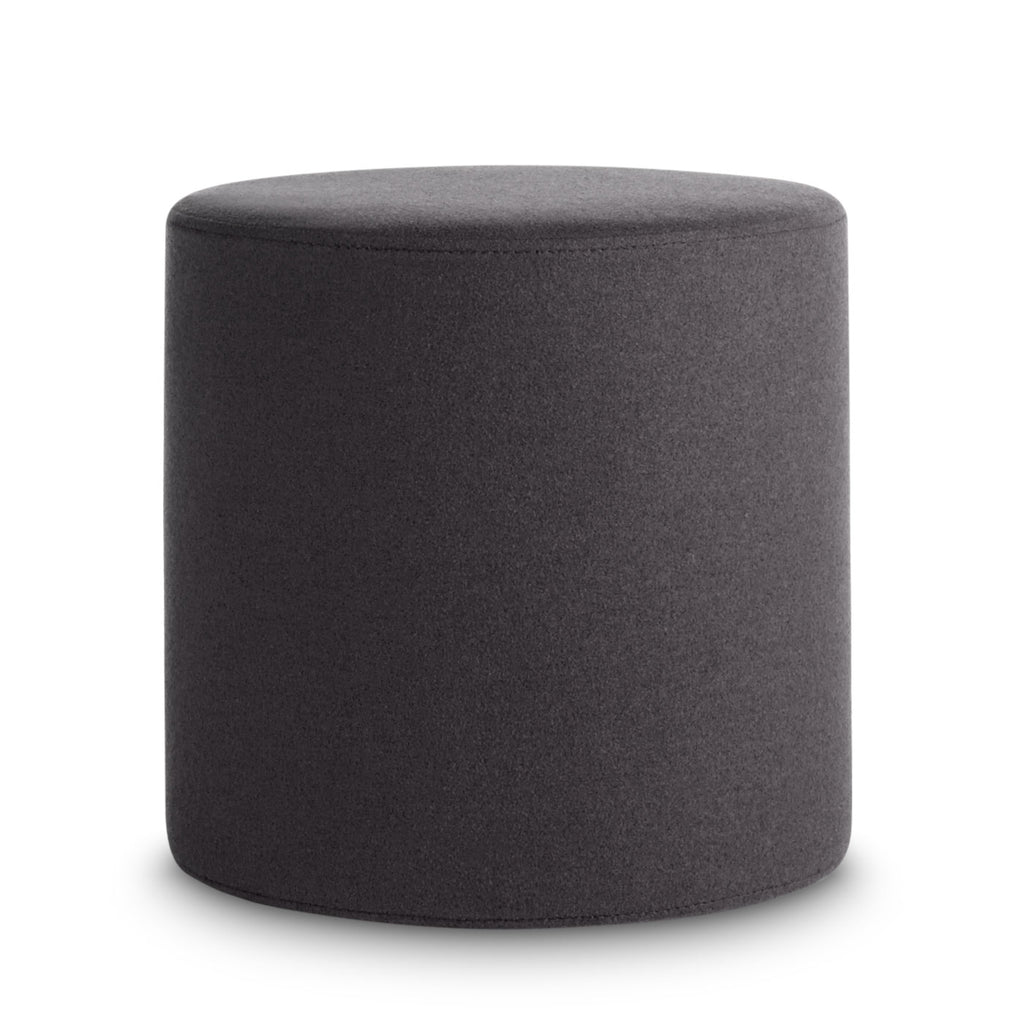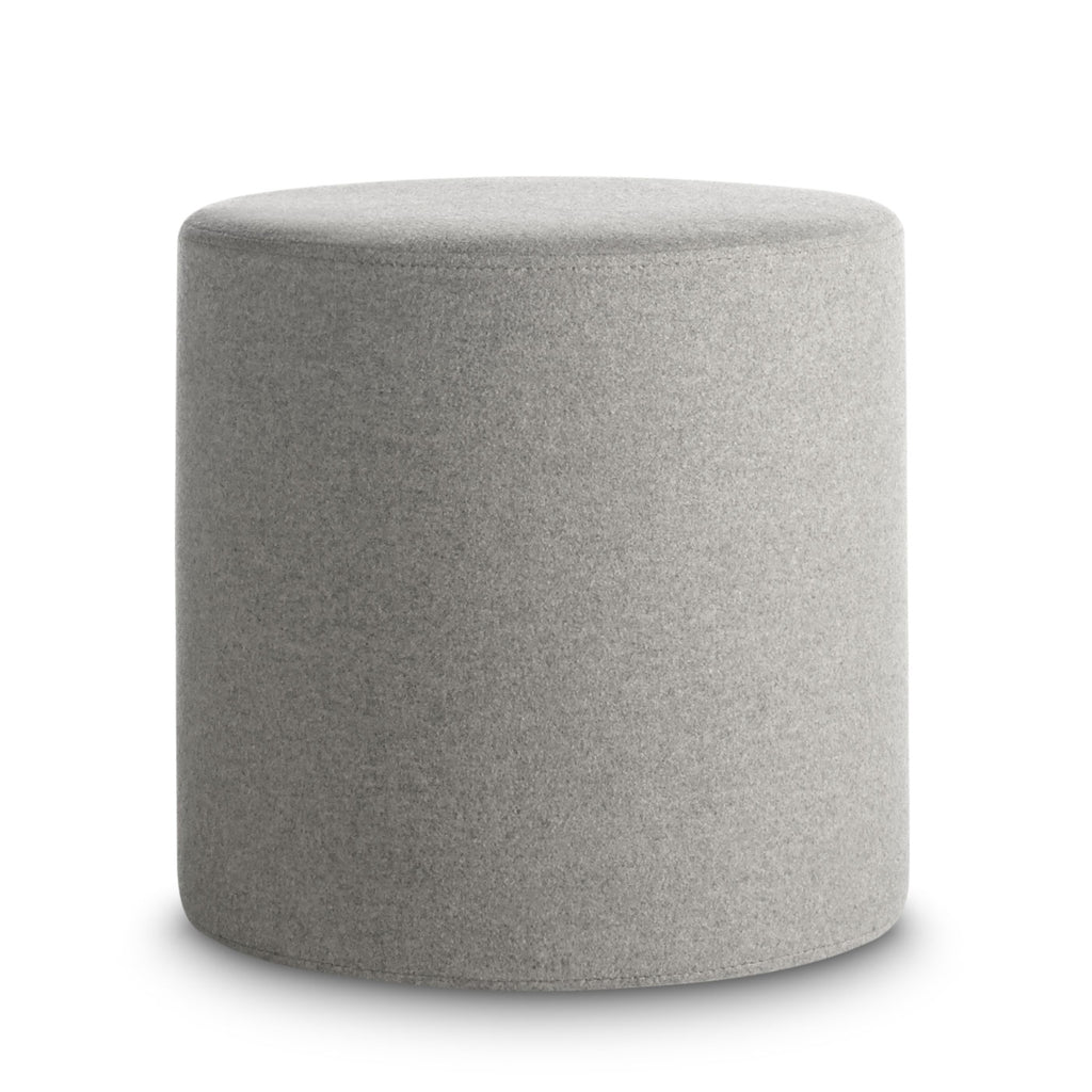 Playful geometry gets to work. Use as side table, foot stool, flexible seating, or an impromptu stage. Soft felted wool blend upholstery is available in boatloads of colours. Top this small round ottoman off with the powder-coated steel Bumper Tray for a more stable and spill-friendly surface.