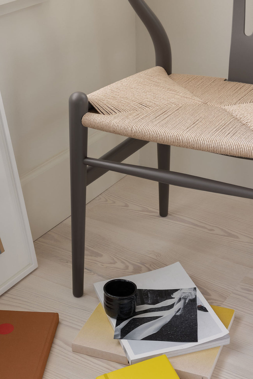 More than 100 steps are required to manufacture each Wishbone Chair, most of which are carried out by hand. The hand-woven seat alone takes a skilled craftsman about an hour to create, using approximately 120 meters of paper cord, the impressive durability and stability of which makes the chair both strong and long-lasting. The Wishbone Chair offers comfort and stability as well as satisfying aesthetic desires for distinctive, elegant form.