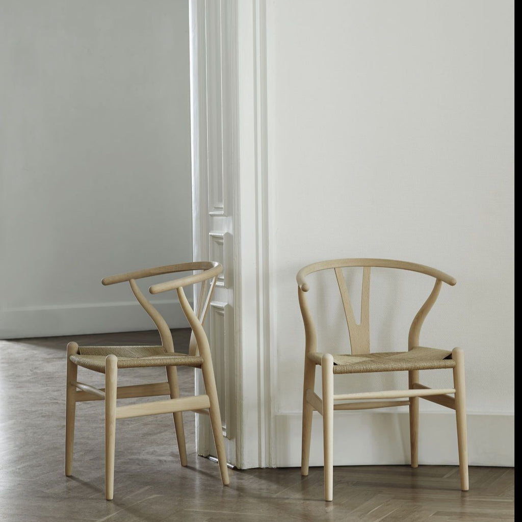 When designing the CH24, Wegner chose to combine the back- and armrest into a single piece. To give stability to the steam-bent top and ensure comfortable support, Wegner developed the characteristic Y-shaped back that the Wishbone Chair is named after.