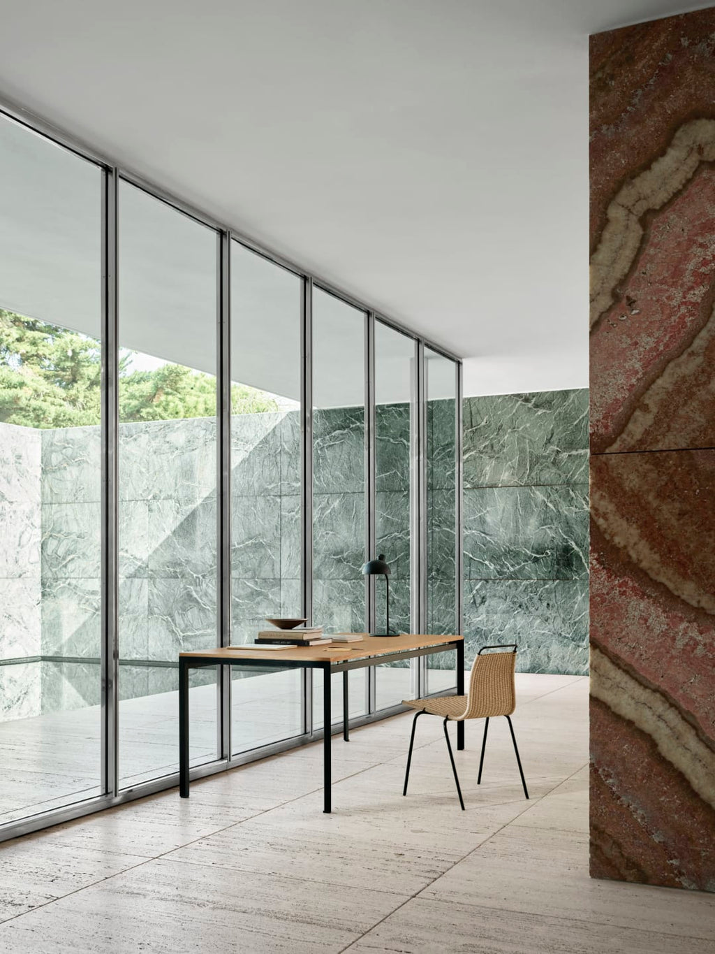 Originally made with wicker, the PK1 is available today in an updated version with an FSC-certified weaved paper cord seat, which looks equally beautiful from both the front and the back. The weaving technique has been recreated by Carl Hansen & Søn in accordance with Kjærholm’s original chair design; it takes a skilled craftsman 15 hours to weave the seat by hand. The combination of industrial steel and weaving paper cord exudes lightness and elegance; the PK1 is today considered a design icon because it balances aesthetics, comfort and stability beautifully.