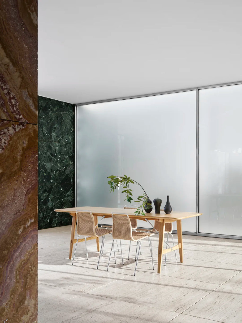 Poul Kjærholm was one of the star architects behind Danish Modern. With his functionalistic approach to furniture design, Kjærholm cultivated simplicity and lightness. Moreover, as a designer, he excelled at combining his favorite material, steel, with other organic materials. Both qualities are reflected beautifully in the PK1 dining chair.