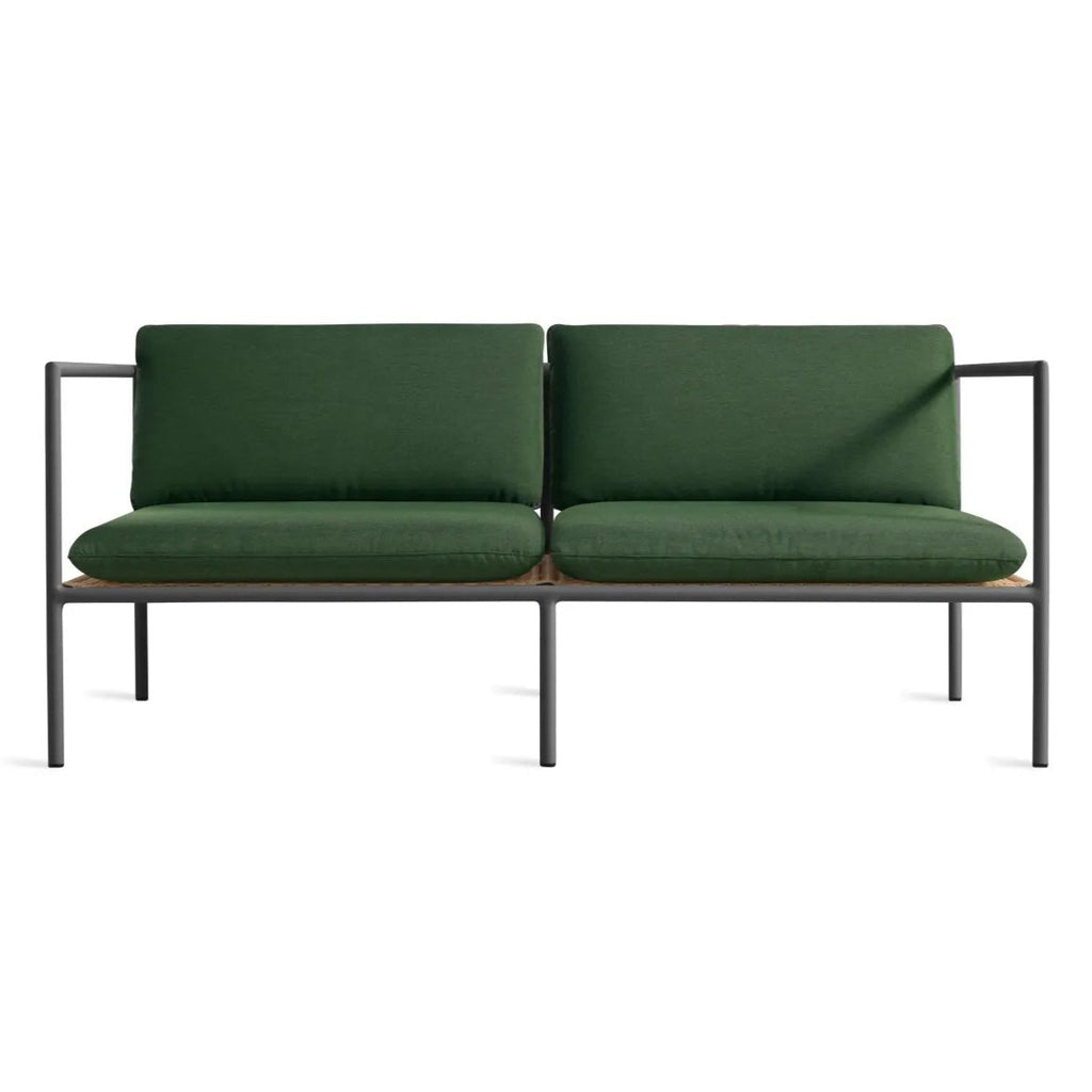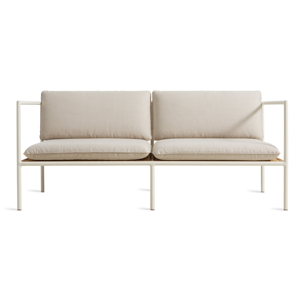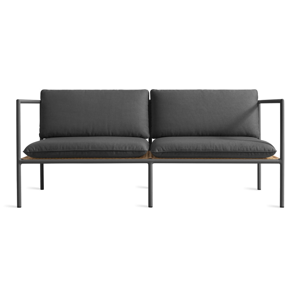 All-weather rattan adds hand-woven texture to an architectural tubular aluminum frame. Designed to have great vistas from all angles, Dog Days is what happens when a minimalist goes on vacation and gets in touch their inner hippy. Seat and back feature ravioli style cushions upholstered in high-performance, mildew and fade resistant Sunbrella™ fabric.