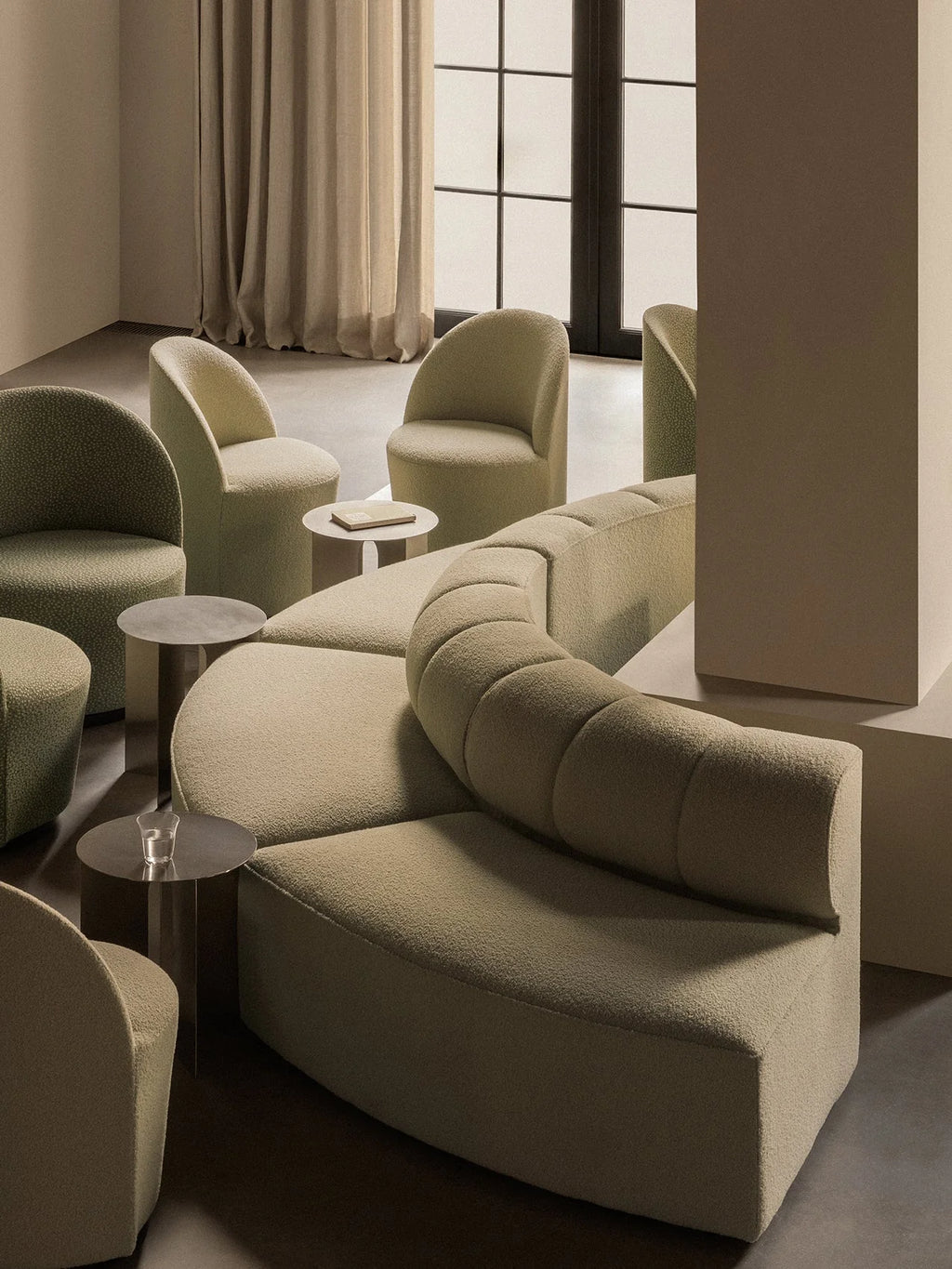Inspired by architecture Eave Modular Seamline Sofa 86 takes its name from eaves ”the lower edges of the roof that overhang a wall. The sofa’s distinctive detail is its internal eaves”, curved upholstered armrests that lend the sofa its expressive character. A perfect blend of style and comfort, Eave is a generous sofa that will encourage owners to relax. The seating angle is also ideal for offices or public spaces, enabling the user to sit actively engaging with work. Figure out your own configuration to suit your space.
