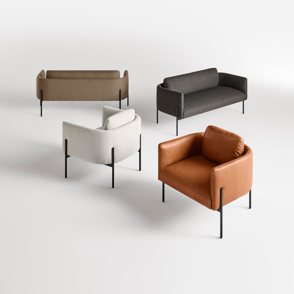 Polite meet petite. Not every design needs to shout, but Getup is no shrinking violet. With demure proportions, an elegantly curved back, tailored loose cushion, and sleek metal frame that cradles its upholstered components, the Getup Collection speaks confidently in quiet, measured tones.