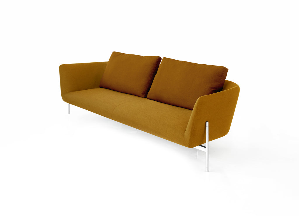 With a floating frame and elegant legs in either oak, chrome or bronzato, the Loft sofa is a clean and tailored classic that invites you into it’s embrace. Thanks to the exaggerated look of the legs and the simplicity of the integrated seat cushion, this sofa is a great piece to be used both residentially and in contract applications. Comes in three standard lengths: 180cm, 215cm or 245cm.