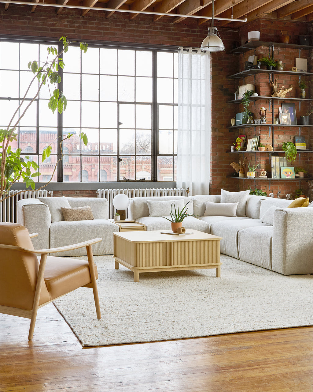 With plush comfort and a sophisticated, structured shape, our innovative Nest Modular Series invites you to sink in and stay awhile. The epitome of easy luxury, this versatile collection features five core components (Left Arm, Right Arm, Corner, Armless, and Ottoman) that offer near-endless configurations, allowing you to tailor your lounging experience to your evolving lifestyle. Each piece touts a plump low profile (courtesy of premium feather fill) encased in nubby bouclé fabric, with a Scandinavian-inspired modern shape that is versatile enough to hold court in a beach house, mountain escape, or boutique hotel lobby.