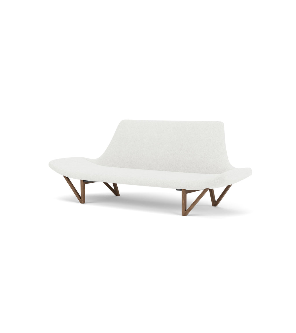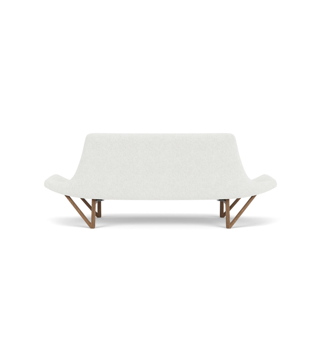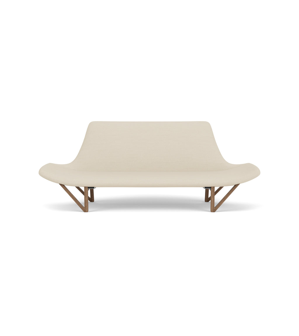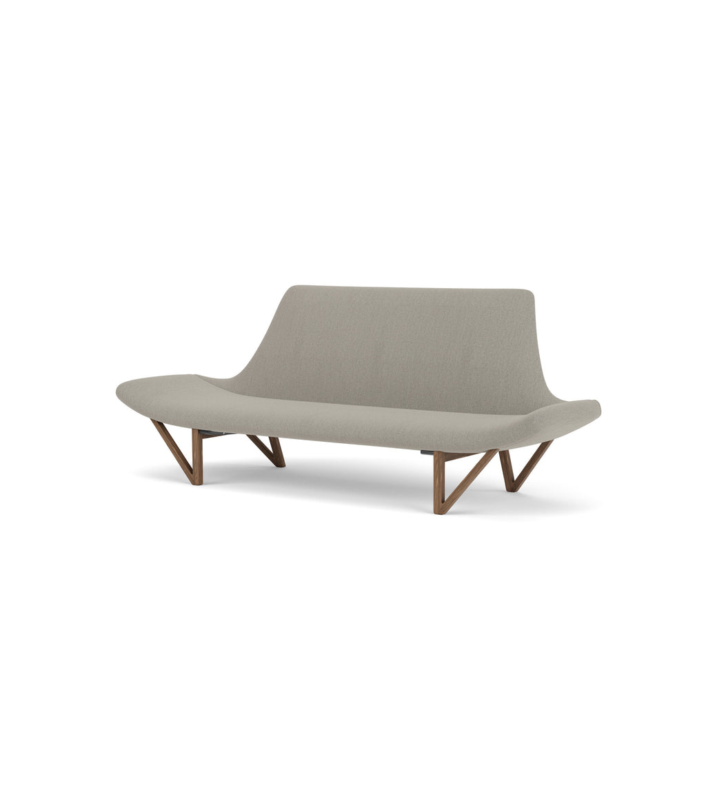 An elegant masterpiece by the husband-and-wife designer duo Tove and Edvard Kindt-Larsen, the Pagoda Sofa is unknown to most. Avantgarde and artistic for its time, its low, almost flat, armrests and beautiful V-shaped legs make it light and precise in its design language – and give the sofa a contemporary look. Taking its name from Asian architecture, it is expressive and unique in its simplicity – much like the temples it refers to. First presented to the world in 1956, today it remains a striking piece of design. Available in natural oak or walnut and upholstered in leather.
