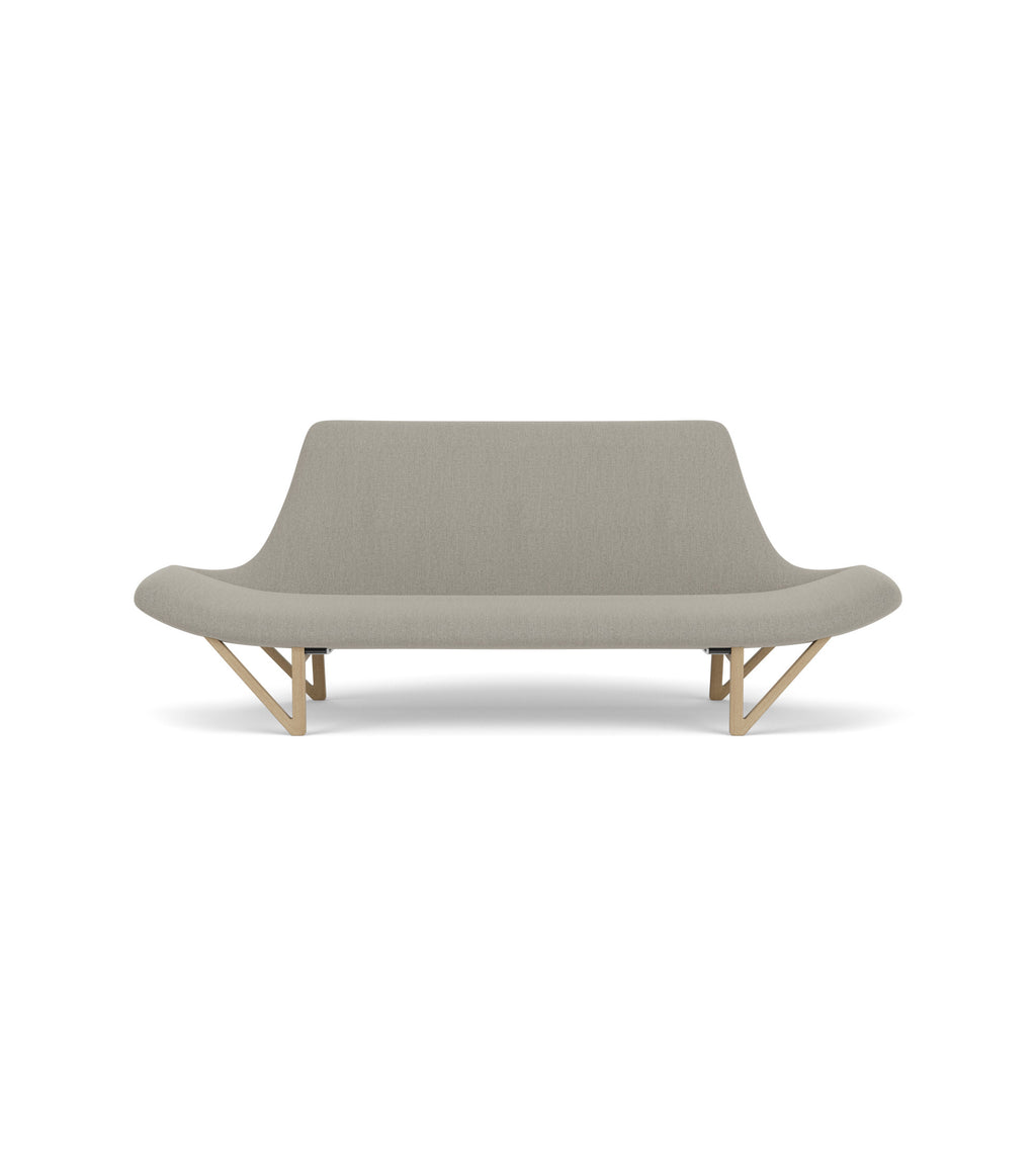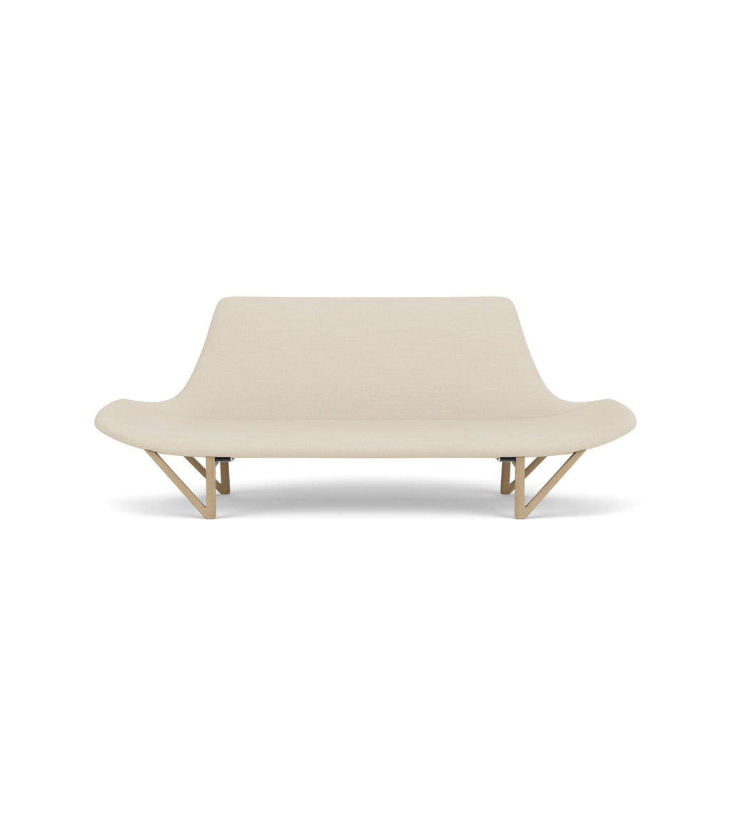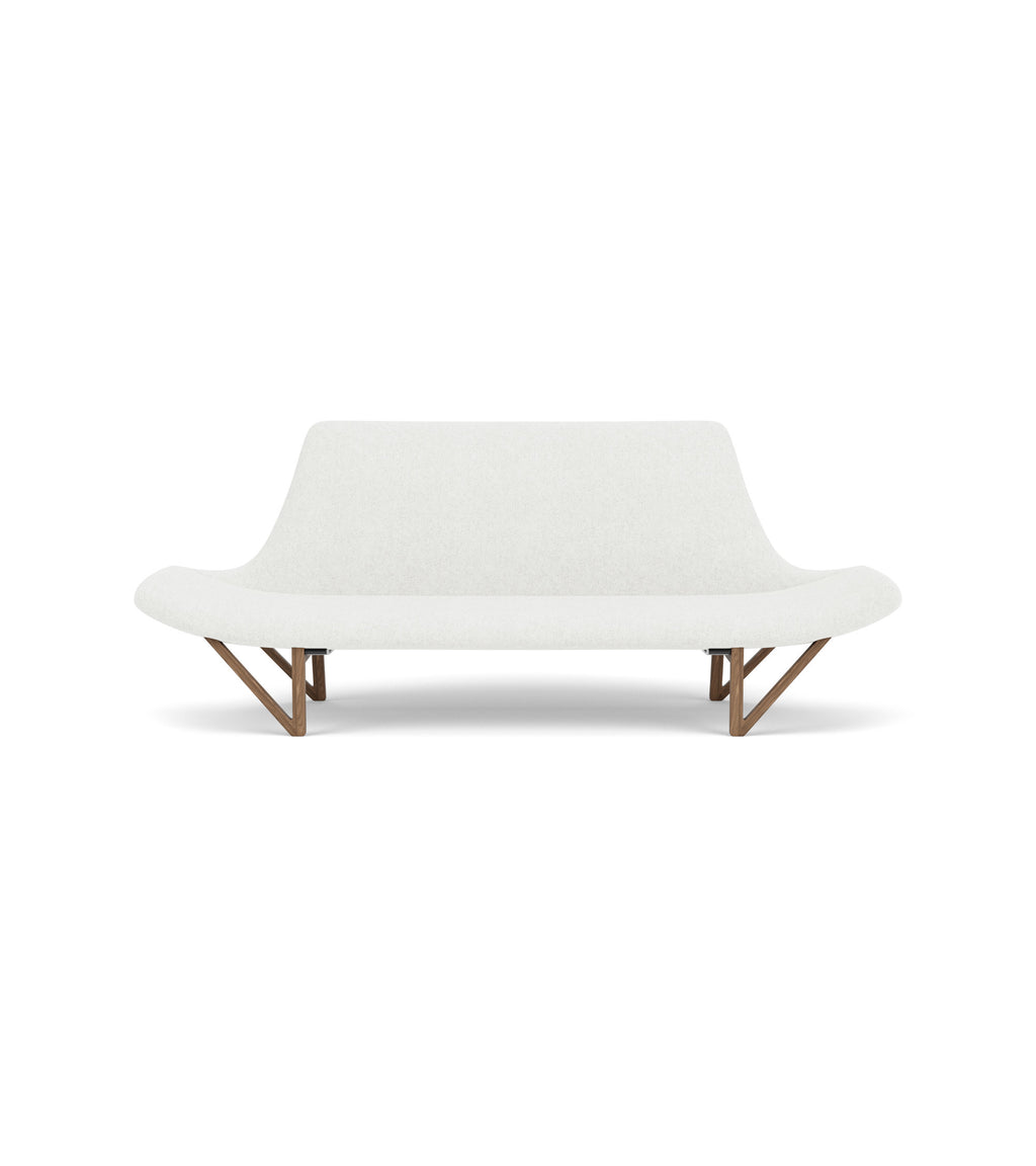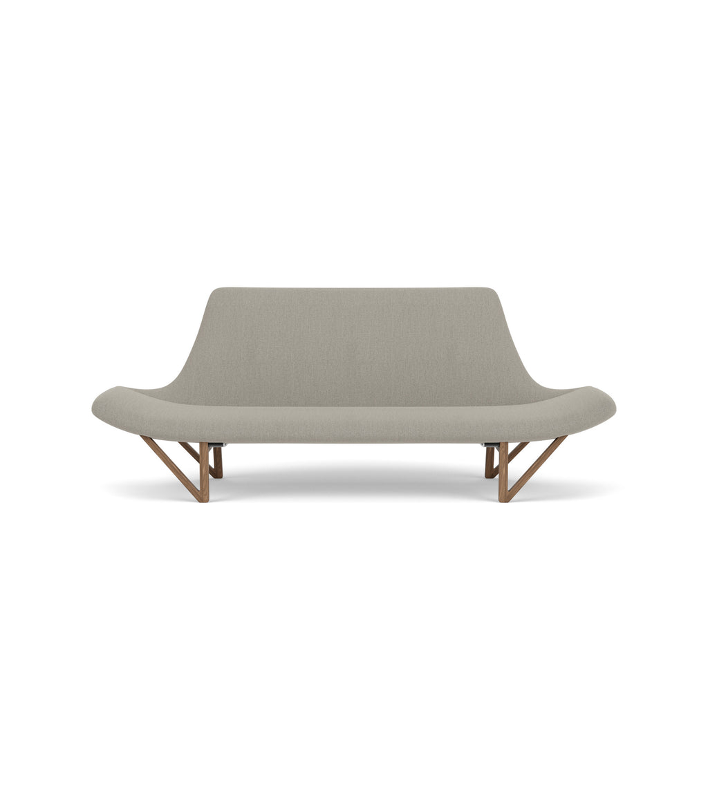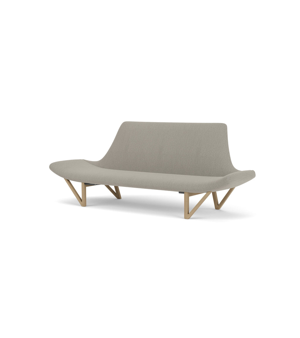 An elegant masterpiece by the husband-and-wife designer duo Tove and Edvard Kindt-Larsen, the Pagoda Sofa is unknown to most. Avantgarde and artistic for its time, its low, almost flat, armrests and beautiful V-shaped legs make it light and precise in its design language – and give the sofa a contemporary look. Taking its name from Asian architecture, it is expressive and unique in its simplicity – much like the temples it refers to. First presented to the world in 1956, today it remains a striking piece of design. Available in natural oak or walnut and upholstered in leather.