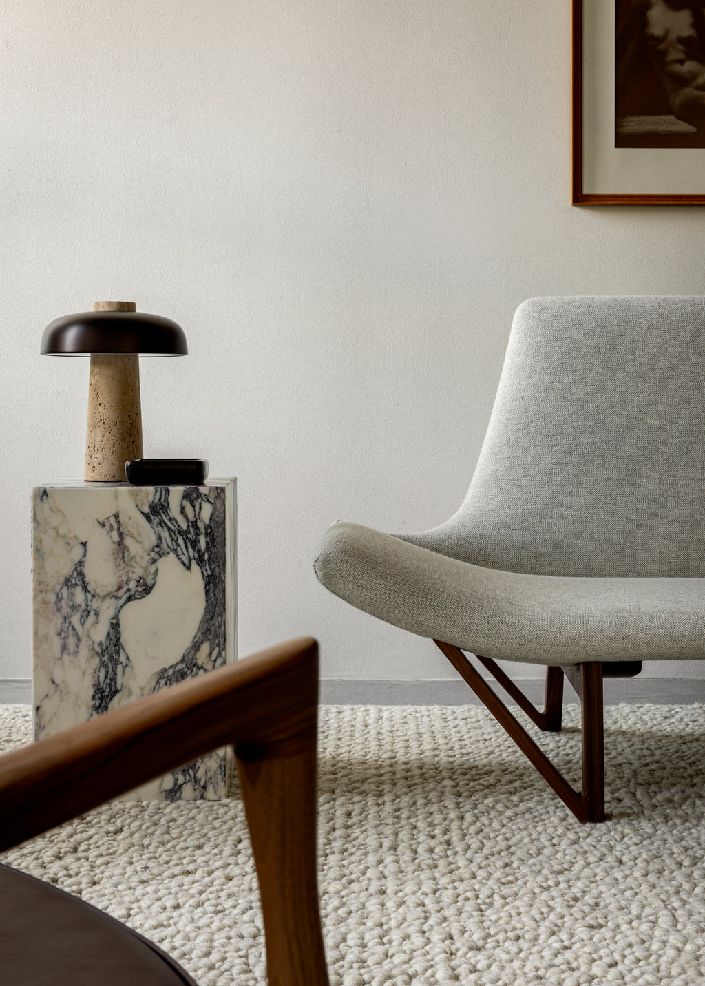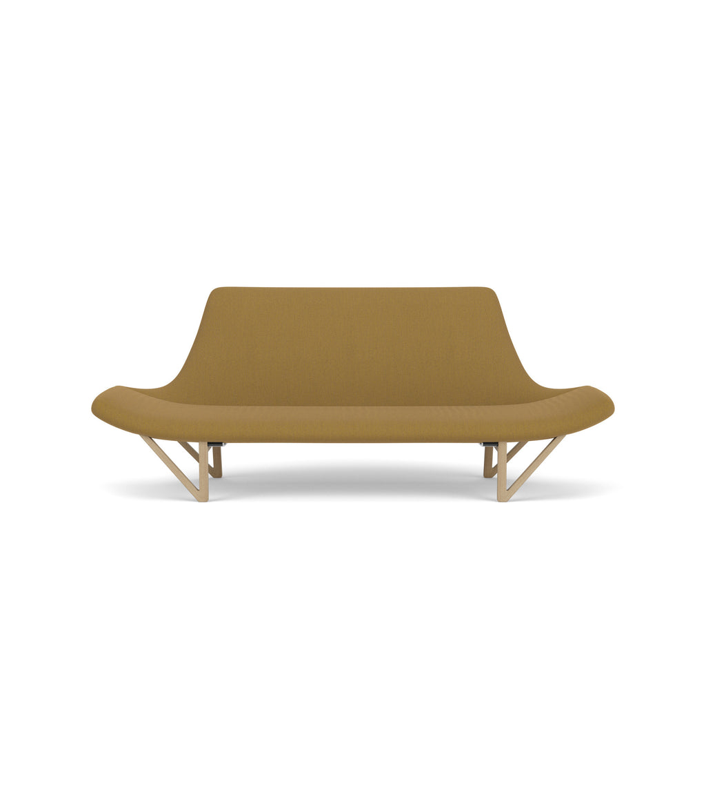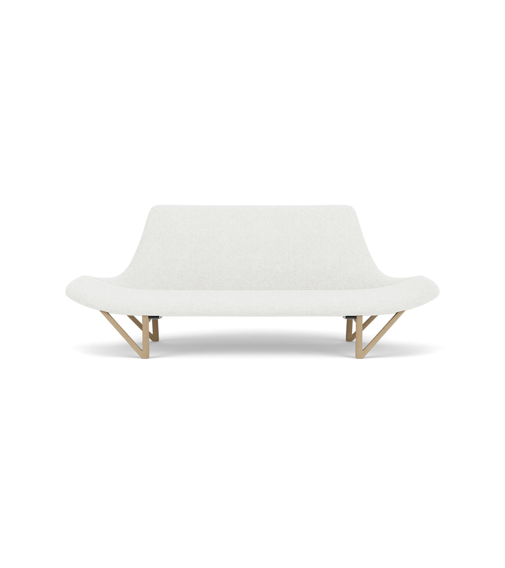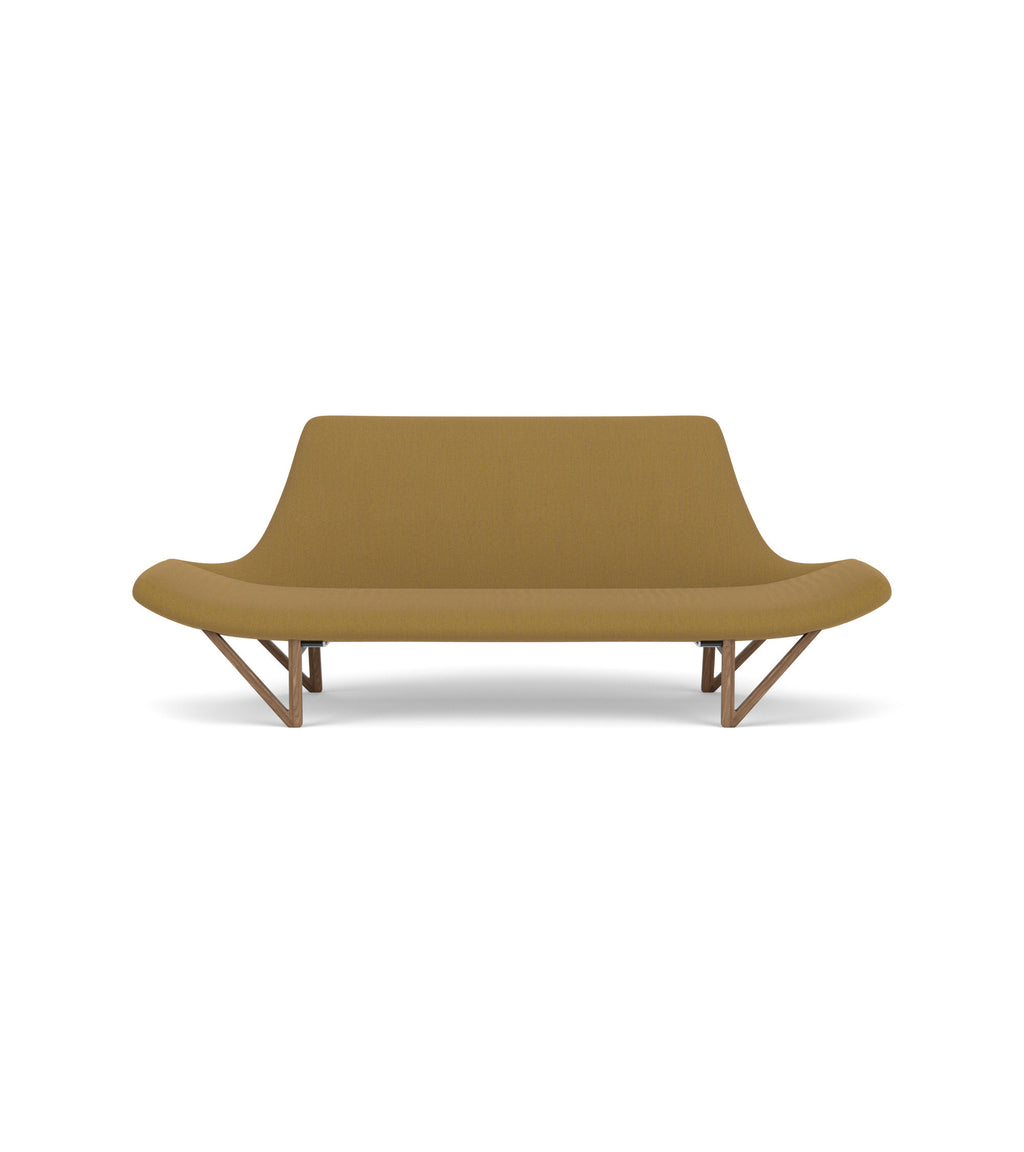 An elegant masterpiece by the husband-and-wife designer duo Tove and Edvard Kindt-Larsen, the Pagoda Sofa is unknown to most. Avantgarde and artistic for its time, its low, almost flat, armrests and beautiful V-shaped legs make it light and precise in its design language – and give the sofa a contemporary look. Taking its name from Asian architecture, it is expressive and unique in its simplicity – much like the temples it refers to. First presented to the world in 1956, today it remains a striking piece of design. Available in natural oak or walnut and upholstered in leather.