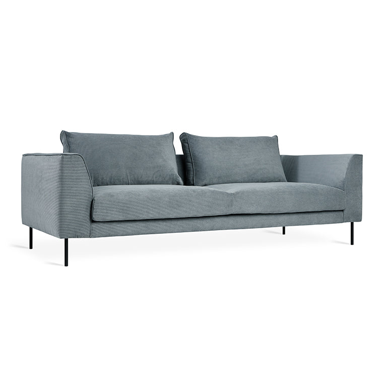 The Renfrew Series is an assortment of semi‐modular seating components that can be arranged to create sofas, sectionals, or custom seating configurations in a variety of sizes and styles to suit any space. In the tradition of European modernism, Renfrew has ultra‐clean lines, a deep, low‐profile stance and delicate legs which give it a light, floating appearance. Loose back cushions lend variety to the silhouette and can be positioned individually to achieve the perfect lounging position. A durable, hardwood frame is crafted with FSC®‐Certified wood to support responsible forest management. Premium feather fill in both the seat and back make this design the ideal balance of minimalist style and everyday comfort.