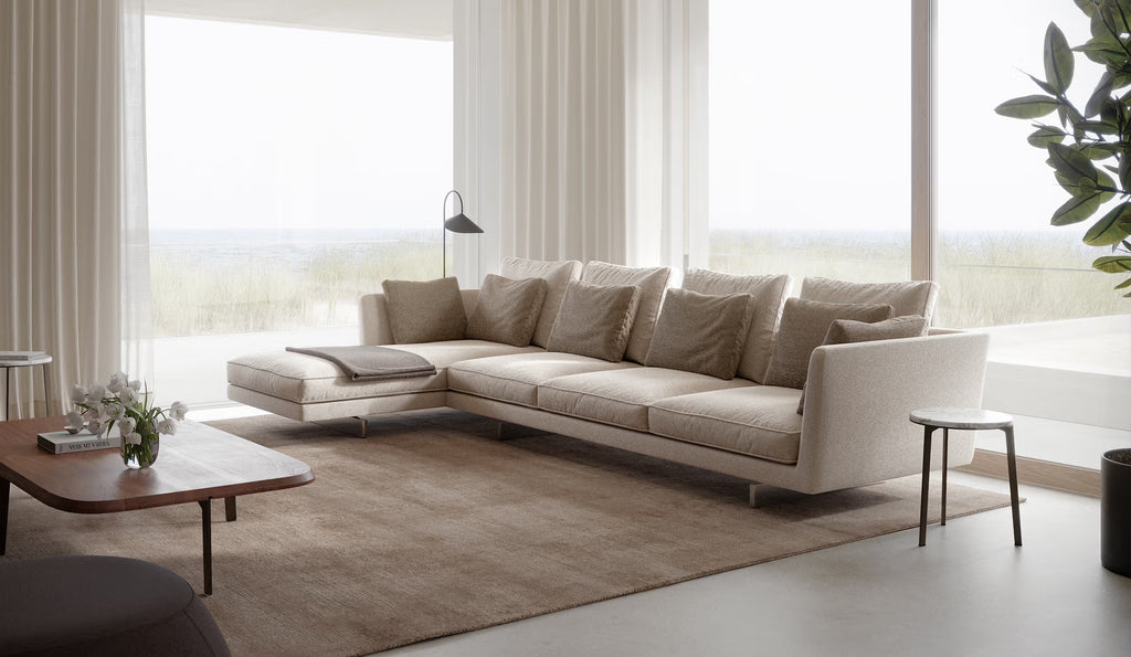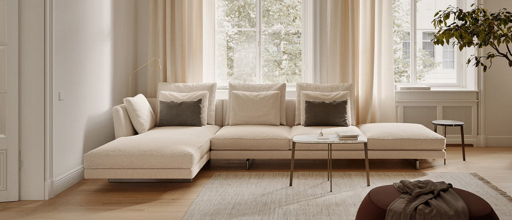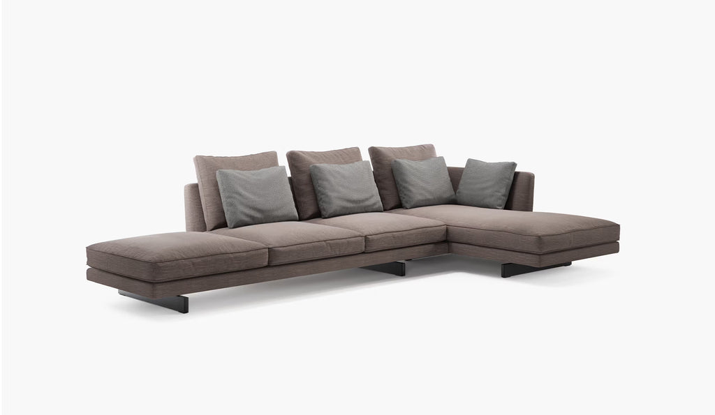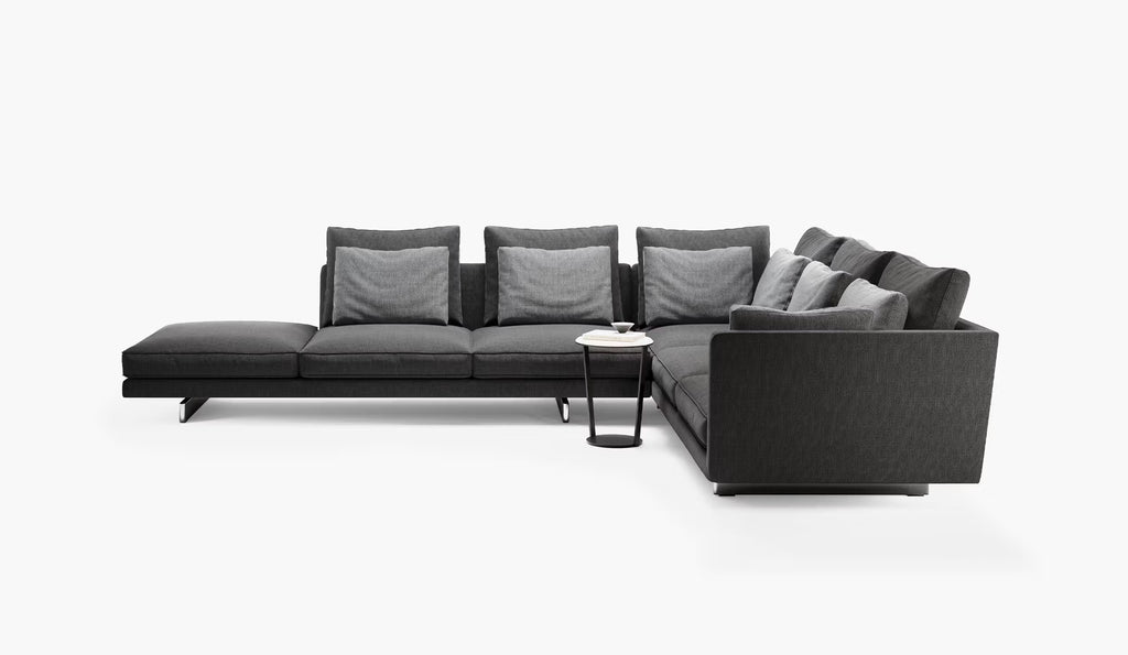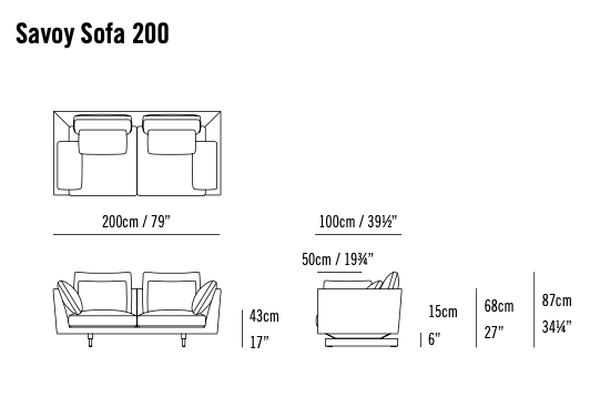 Fall into the layered softness of the Savoy sofa, a luxurious destination in the home. Resting atop parallel slim legs the tapered backrest supports a plethora of feather cushions that invite you to lounge. Quality and comfort are top priority and may be readily experienced in the expansive modular series.