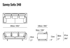 Cushions included as per line drawings in same upholstery as frame. Cushions available in different fabric at additional cost.