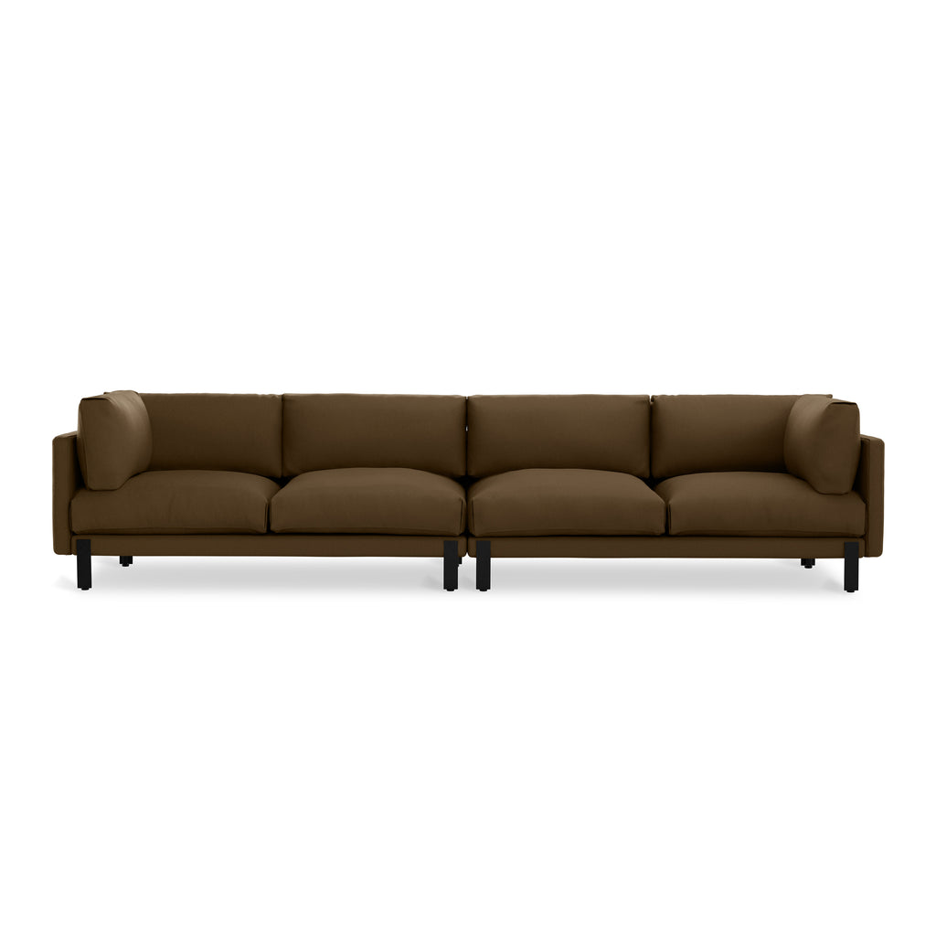 The Silverlake Upholstery Collection is a Scandinavian-inspired seating design that strikes an elegant balance between minimalist styling and a casual, inviting feel. The design features a slender tuxedo frame, and plush seat and back cushions filled with our eco-friendly, signature PET fill. The back and side cushions can be adjusted to your preferred angle, while the generous seat depth enhances the sofa's or sectional's comfort. Subtle features like pleated fabric details on cushion corners and architectural, black powder-coated steel legs complete Silverlake, laid-back modern aesthetic. The collection is a restful haven for any busy home, office or lobby. The frames are constructed with kiln-dried FSC®-Certified hardwood in support of responsible forest management. Silverlake uses a clean, ultra soft, long-strand fiber fill material that offers the comfort and feel of traditional waterfowl down. This material is created through a process that benefits the environment by diverting 929 plastic bottles away from landfills, waterways and oceans for each Silverlake Sectional we build.
