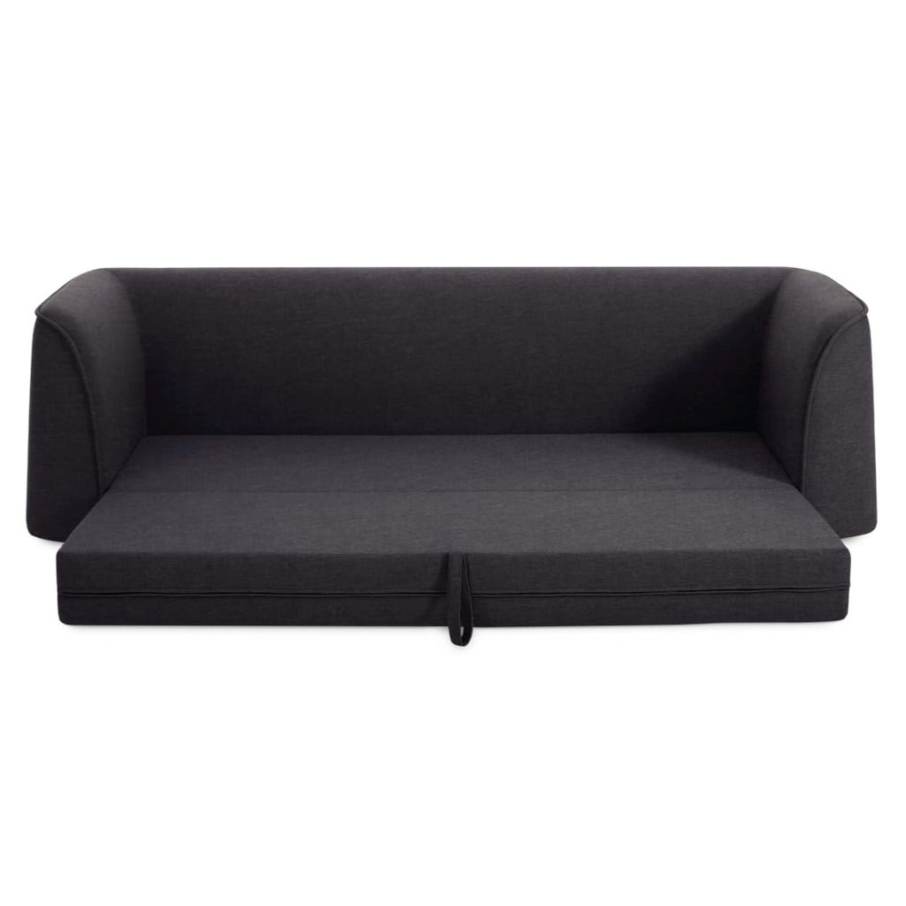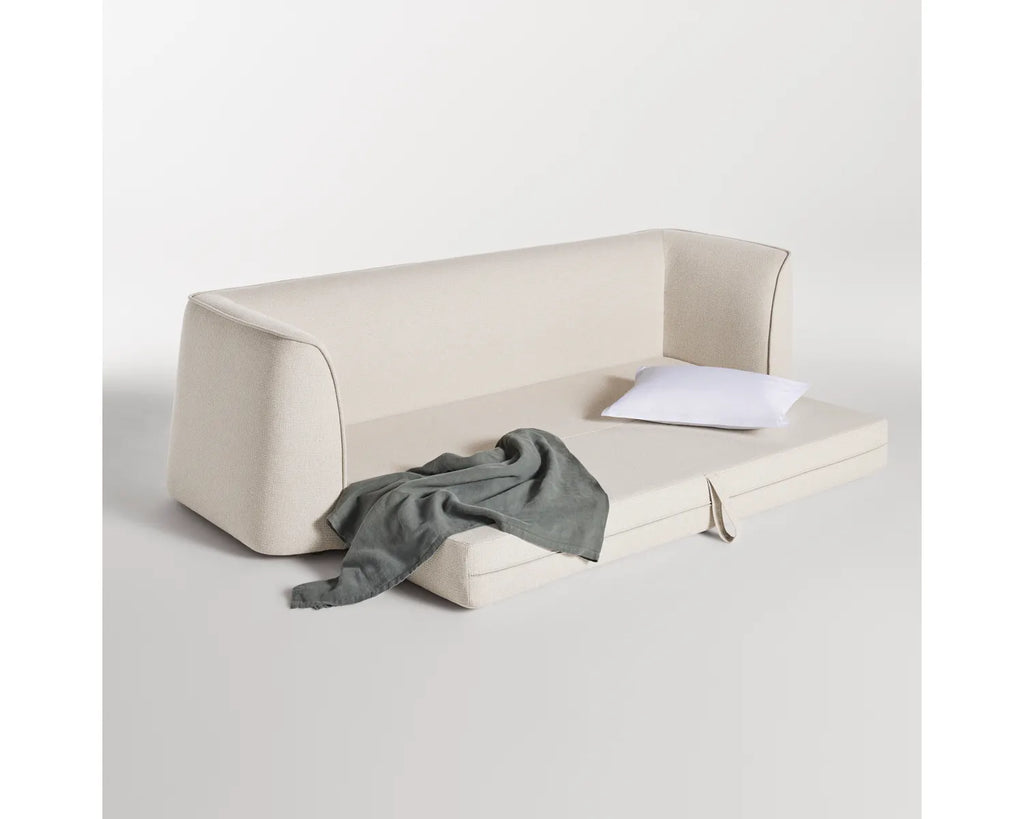 Merging curves and comfort, Thataway is hanging at the intersection of the nearly unassuming and “Whoa, what's that?” Normal and unusual all at once the sofa’s tight seat and back provide an agreeable sit, while the sweeping arms deliver the pretty. Best part, Thataway’s hidden talent. The seat cushion flips forward to create a sleeping surface in a pinch. You are welcome.
