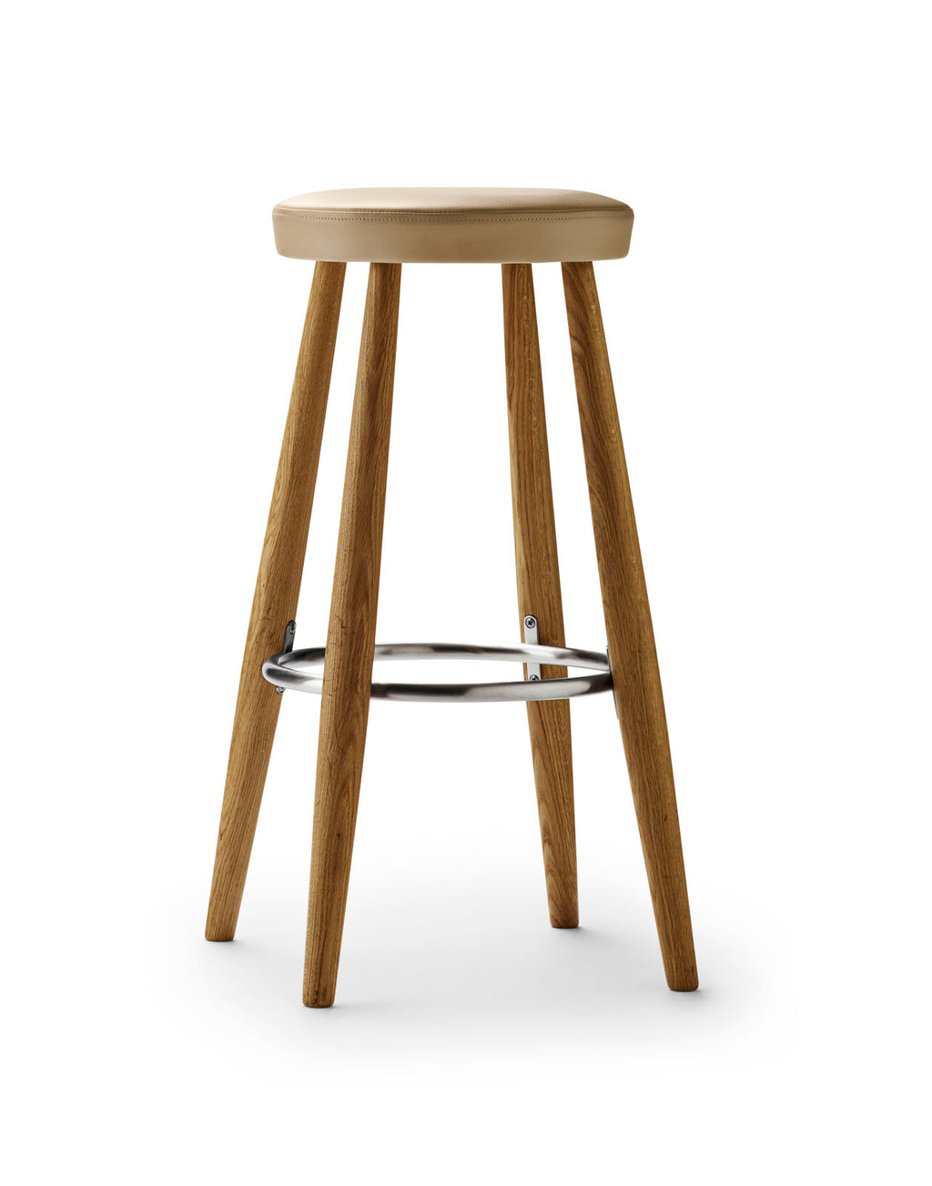 The CH56/58 barstool in solid wood, leather and stainless steel designed by Hans J. Wegner in 1985 is simple, practical and superbly-crafted for great comfort and an appealing atmosphere in any space. It is available in both counter and bar heights.