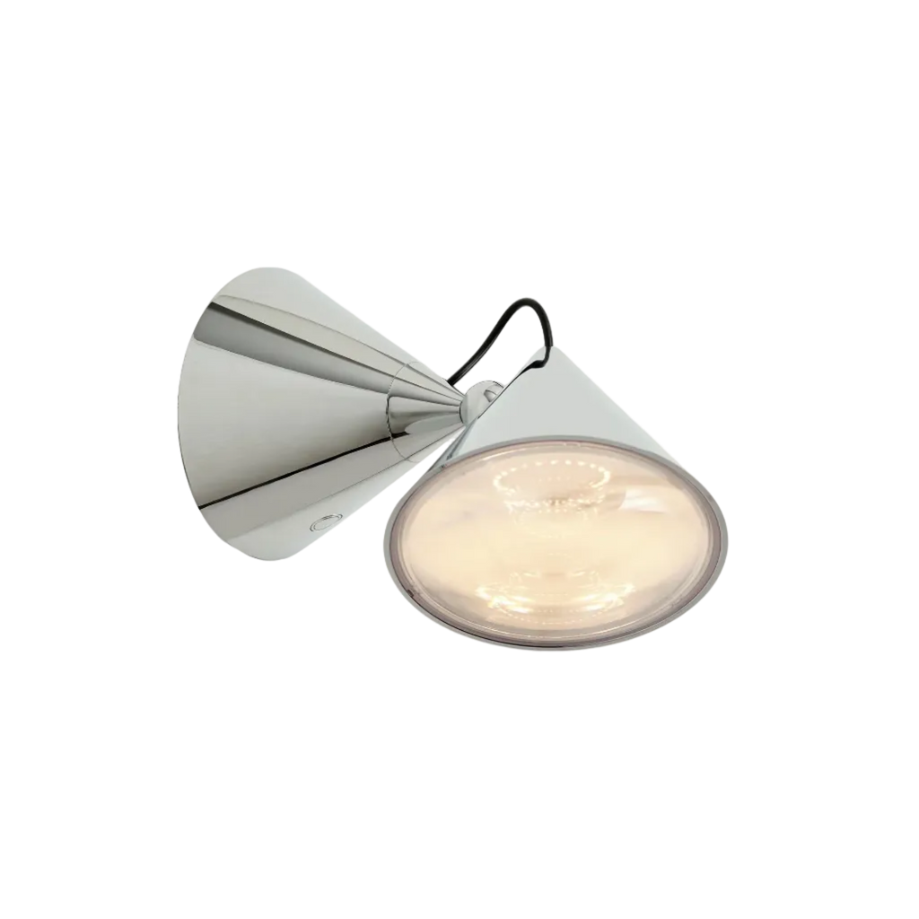 Designed in our London Studio and joining the POSE collection, the POSE Surface Light in Silver is the latest addition to the range. Inspired by the balance of conical forms and the principles of optical physics, it features a Fresnel lense to provide directional light. The POSE Surface Light features a 3-step touch-dimmable buttom and custom chrome ball joint, which enables precise directional adjustment for downlighting, backlighting or accent lighting. Available in Kelp, Putty and Silver finishes, POSE is crafted from steel and comes with an LED replacable light source.