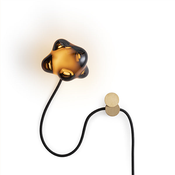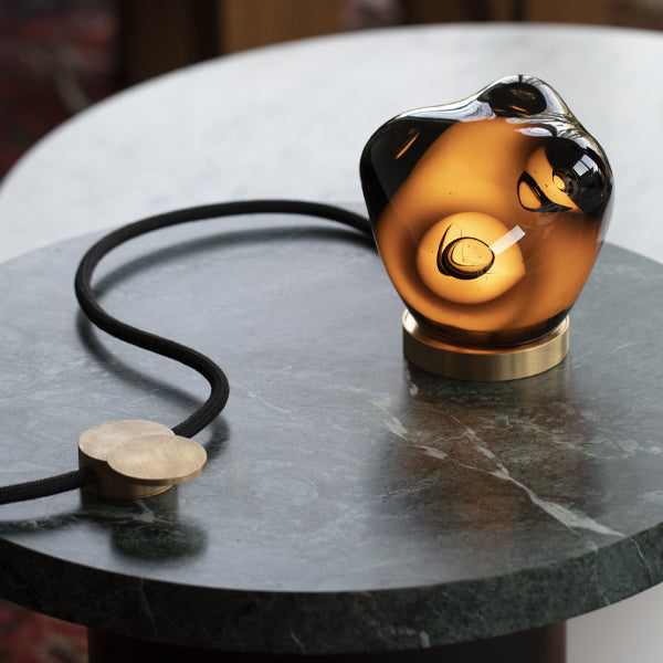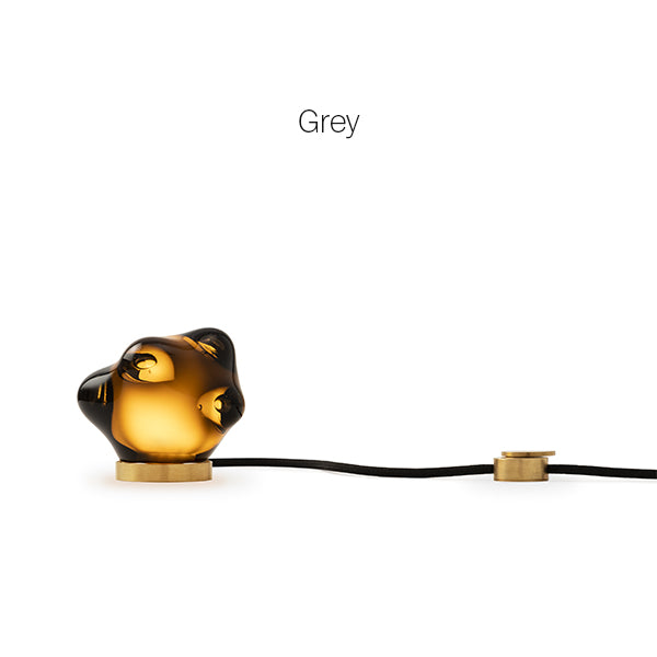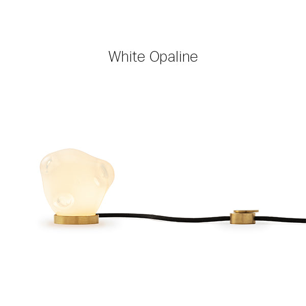 57 series pendants can be used with the table light hardware, which includes an integral dimming system housed within a sleek brass cylinder. The black fabric cord is semi-rigid and may be sculpted to add form. The brass stand has a small notch on the underside, allowing it to be hung on a wall if desired.