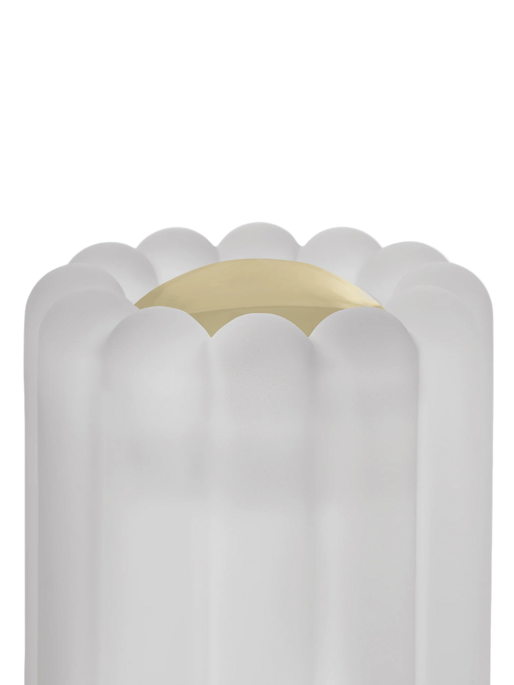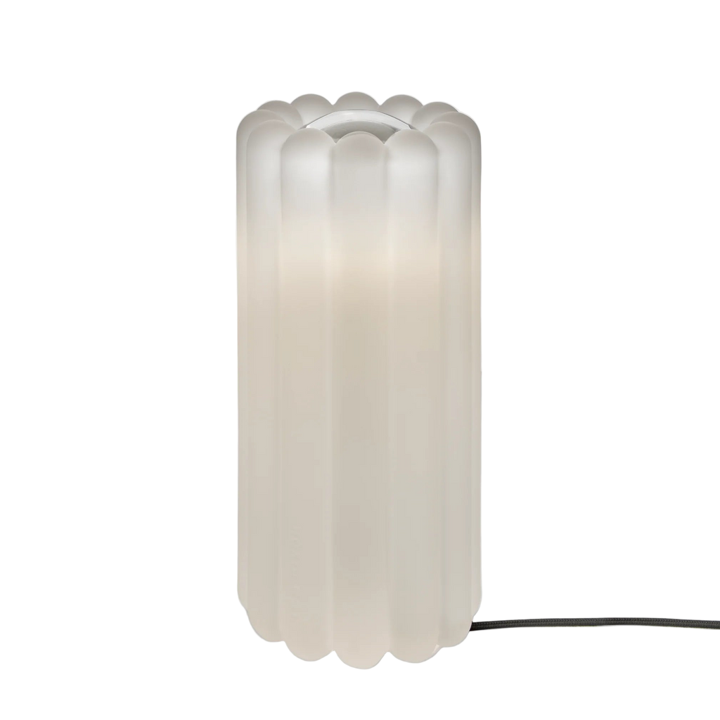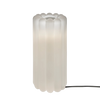 A stunning contemporary table light made of the thickest industrially pressed glass. Designed and engineered to catch and refract light, and to last for ever. The ribbed glass creates diffusion of the light source and projects linear and stripy patterns. The metal dome on the surface lights has been upgraded from a flat cap to a curved dome, for a cleaner aesthetic.