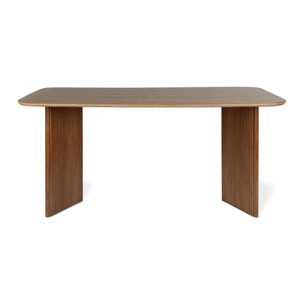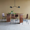 Atwell is a contemporary table collection that draws inspiration from Neo-Classical motifs. Available as a round or rectangular design, this table features a striking dual chevron base with scalloped, solid wood detailing that feels both elegant and monumental. With warm wood grain throughout, Atwell borrows design details, like an exposed ply edge, from Mid-Century Scandinavian precedents. More than just a stylish dining table, this design’s proportions are perfectly suited for use as a captivating desk. Choose the round version to seat four, or the rectangular to host up to six.