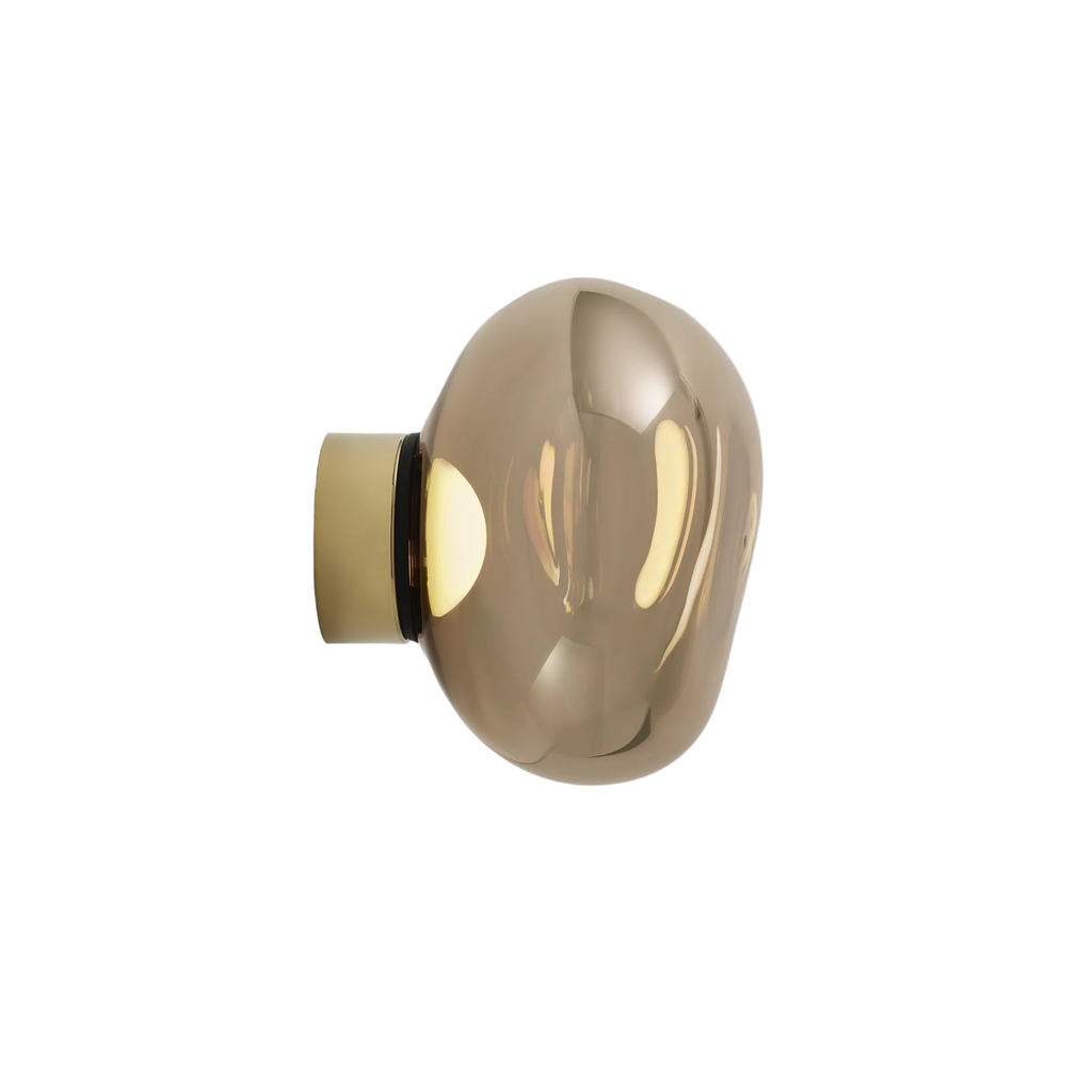 Squashed, squeezed, distorted and moulded into a flatter blob, Melt's extraordinary luminosity has found new applications on wall, ceiling or floor. With its instantly recognizable metallized effect, this latest evolution of Melt is now destined to be mounted on any surface. The versatility of the new shade is further enhanced by the soft glow of a new bulb. Truly there is now a Melt for every occasion. This surface light has been expertly altered to excel in environments both wet and dry. The new LED version includes a 6W LED ring which is expected to last 10 years.