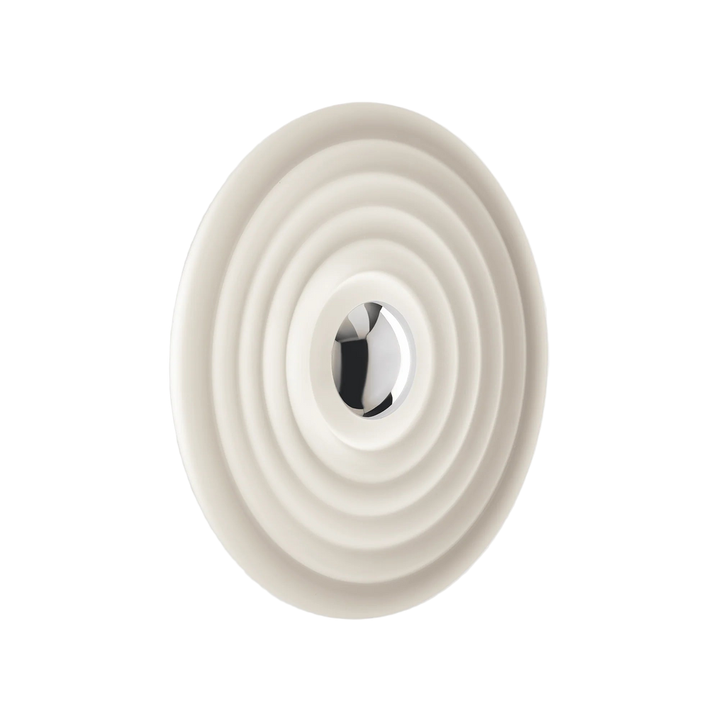 A stunning contemporary wall light made of the thickest industrially pressed glass. Designed and engineered to catch and refract light, and to last for ever. The ribbed glass creates diffusion of the light source and projects linear and stripy patterns. The metal dome on the surface lights has been upgraded from a flat cap to a curved dome, for a cleaner aesthetic.