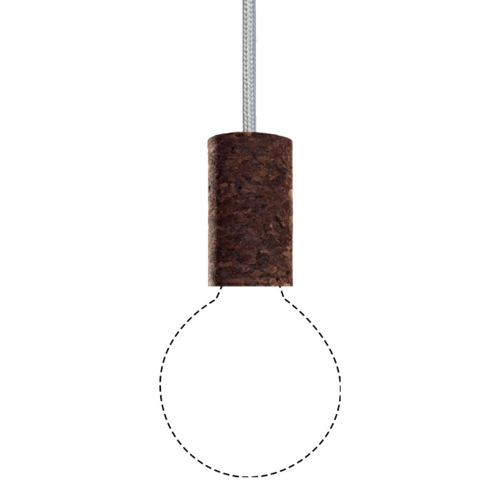 This environmentally friendly socket is made from reused wine corks and waste material from cork production. The cylindrical shape is inspired by an ordinary wine cork but in larger dimensions. The beautiful and natural cork material in combination with the textile cable will give the complete product an elegant and prominent look.