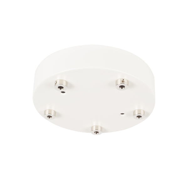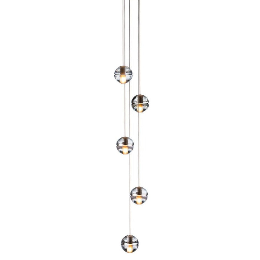 14.5 is comprised of 5 cast glass pendants which attach to a single brushed nickel or white canopy.