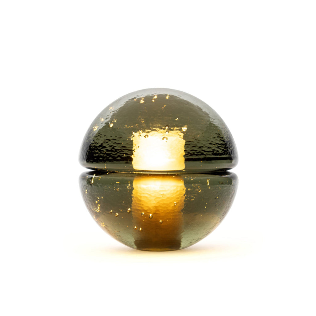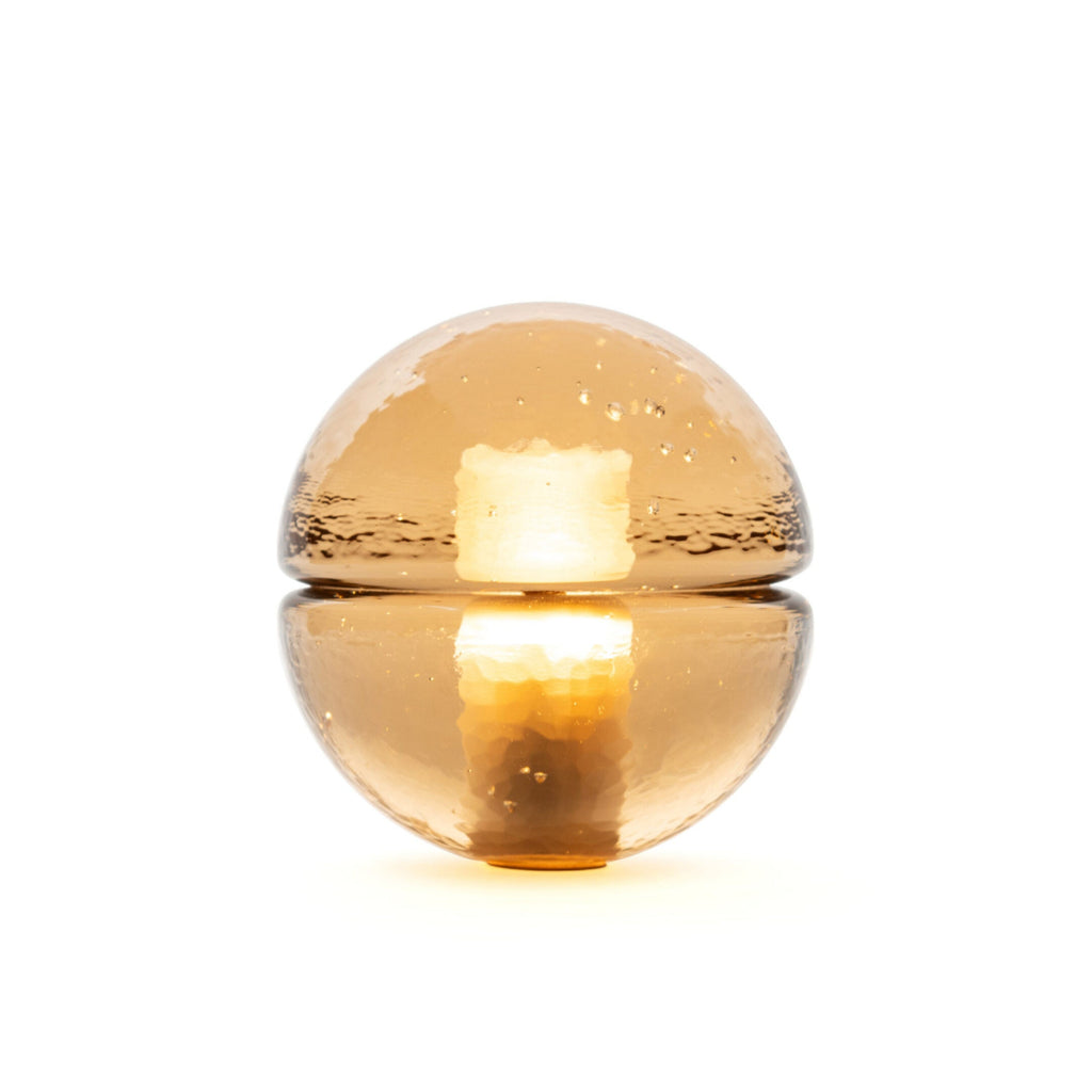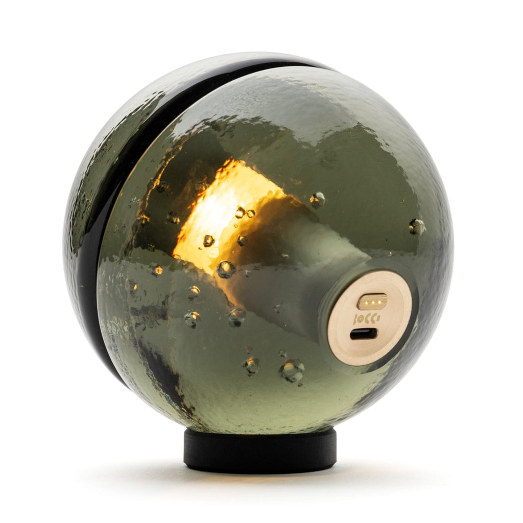 14p transforms Bocci’s iconic 14 Series, first launched in 2005, into a portable, candle-like table light. The rechargeable cast-glass pendant—made of two imperfect poured-glass hemispheres—is fully wireless. Anywhere you go, so does 14p’s rippling, watery glow. Press button to change through three ambient lighting levels.
