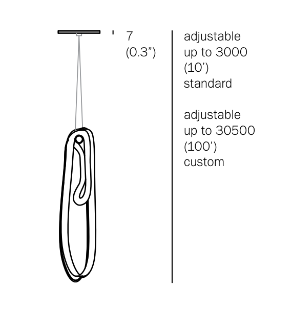 87.1 is comprised of a single pendant suspended from a canopy and swag hook. Pendants can be hung from any number of optional swag points mounted on or away from the canopy. Comes with 10ft of coax cable and aircraft cable.