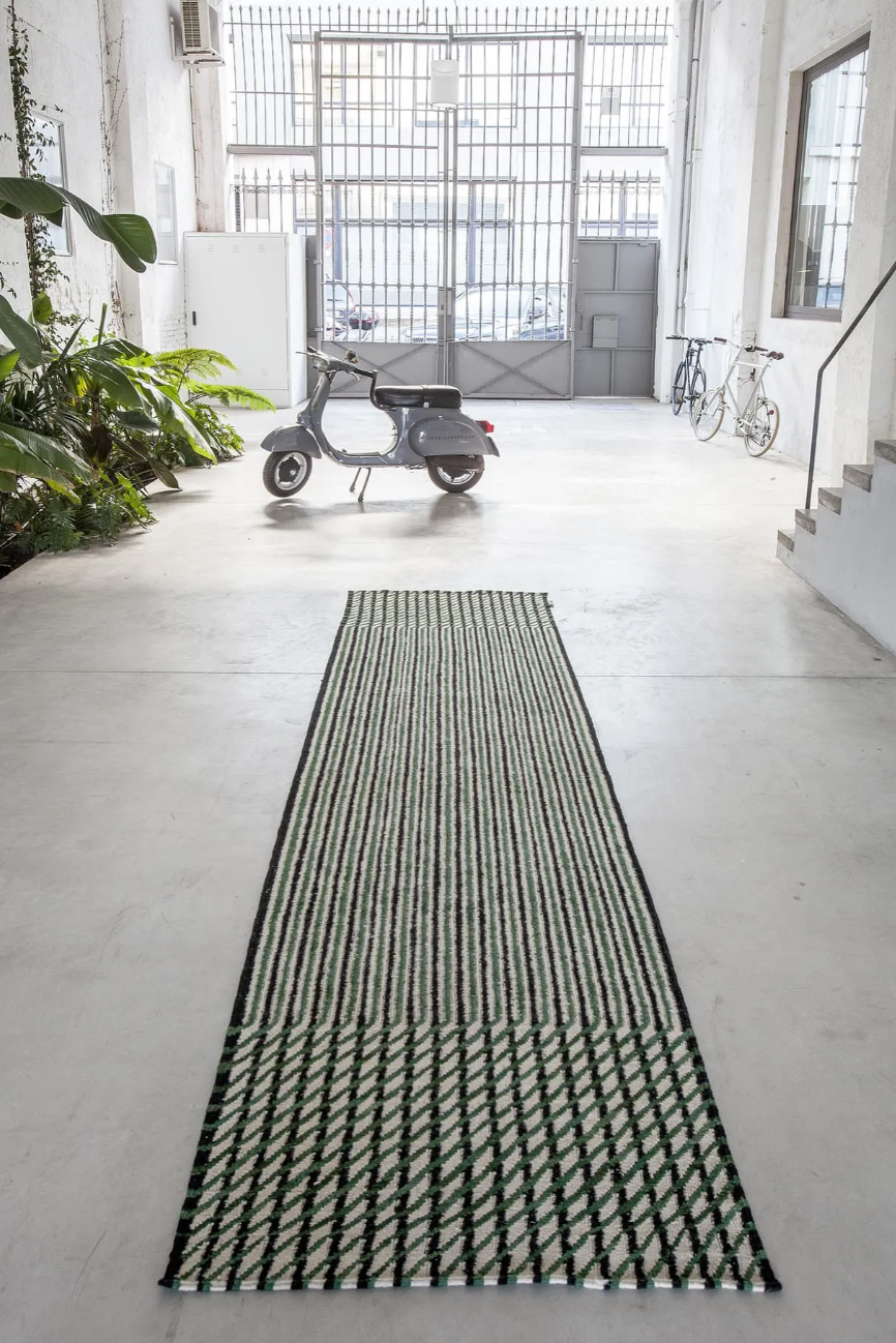 Their mastery, meticulousness, and tireless ability to always go a step further, has led them to work on Blur, a collection that offers two different readings. When viewing the rug from afar, an indefinite, unfocused surface is apparent, that gives its name to the collection. Nevertheless, upon approaching the rug, lines and rhythmic rhombuses in different proportions are revealed, in the purest kinetic style.
