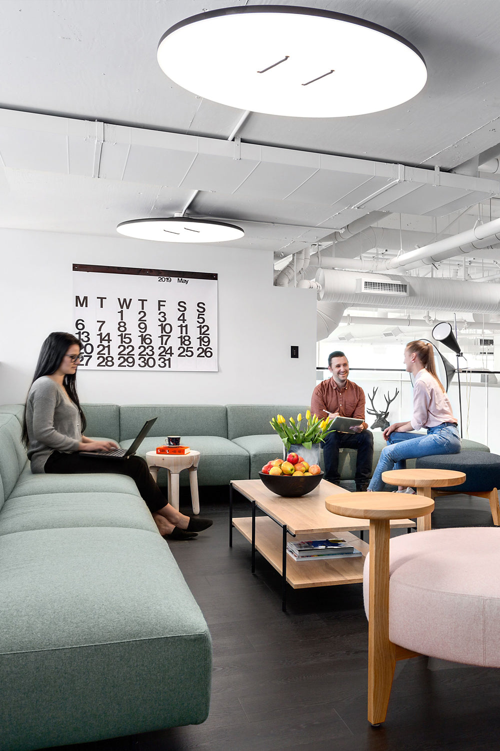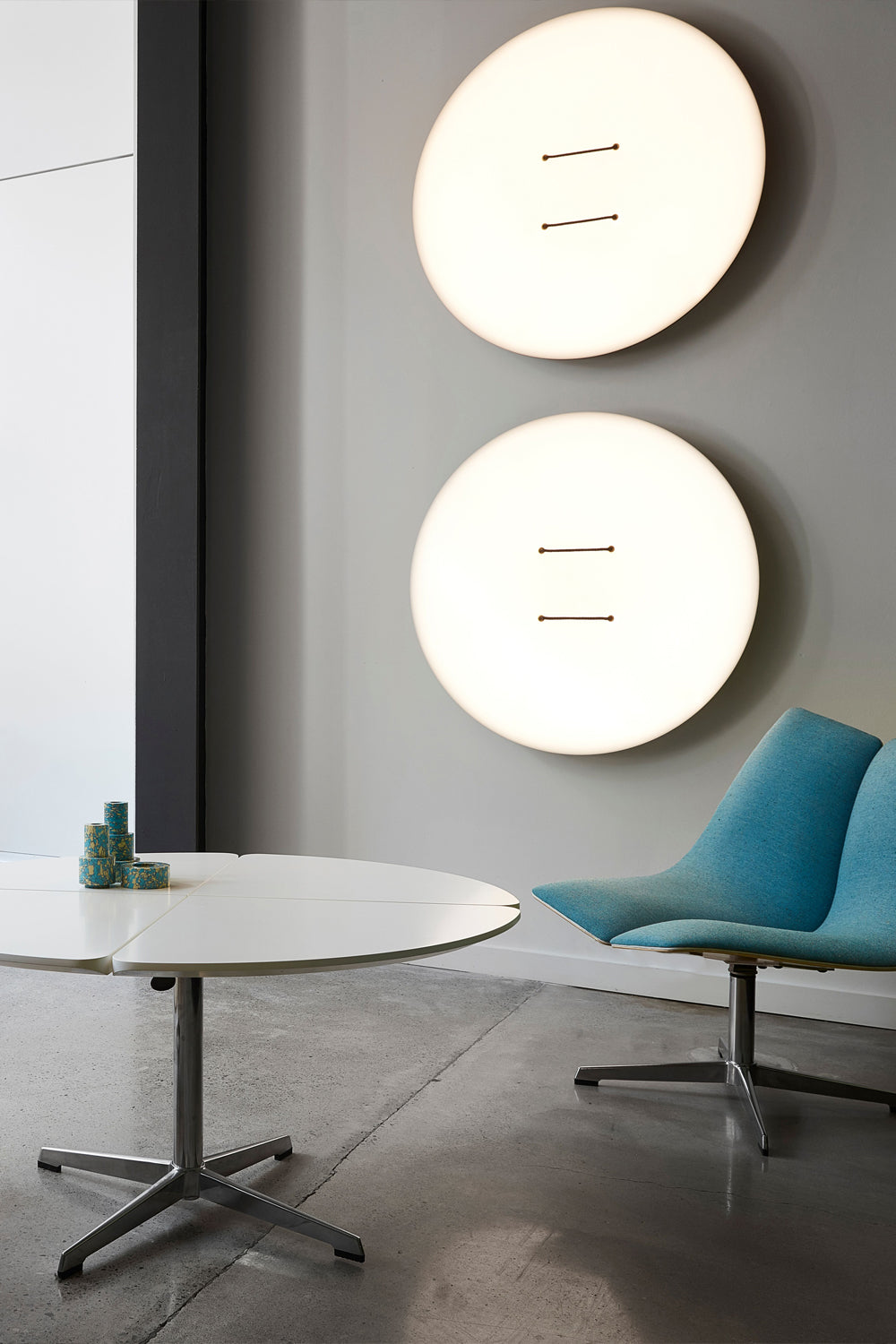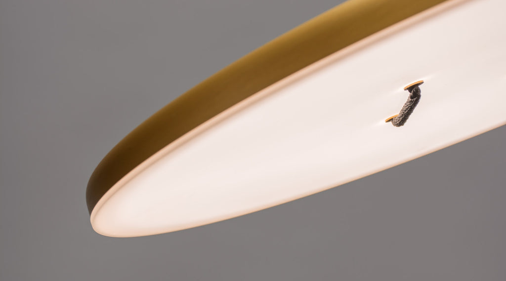 Mimicking a giant button, the broad-faced, thin profiled fixture is memorable and playful, while its surface LED casts a warm and inviting light. The unique suspension system allows the user to articulate the face towards the desired direction. Made in Canada.