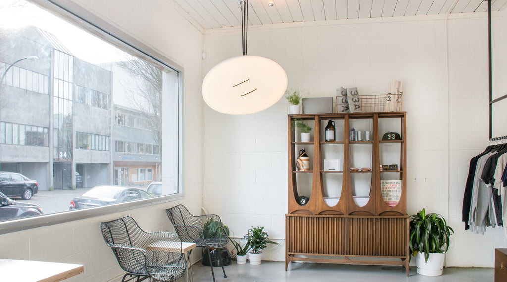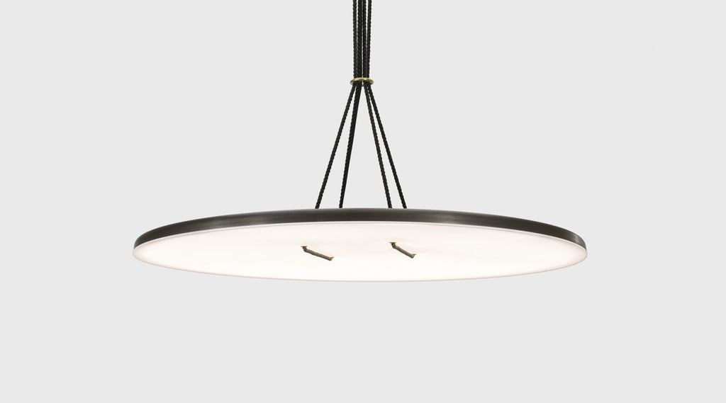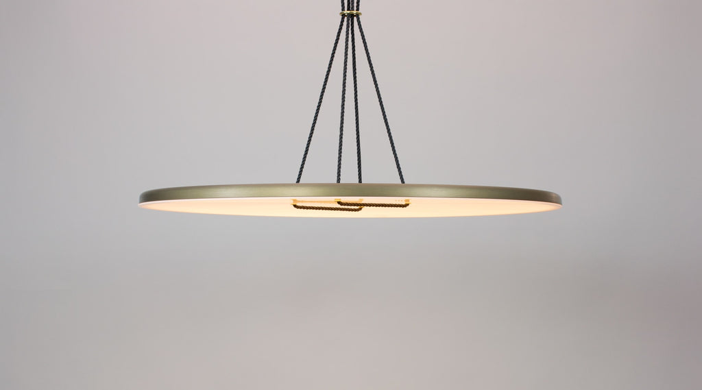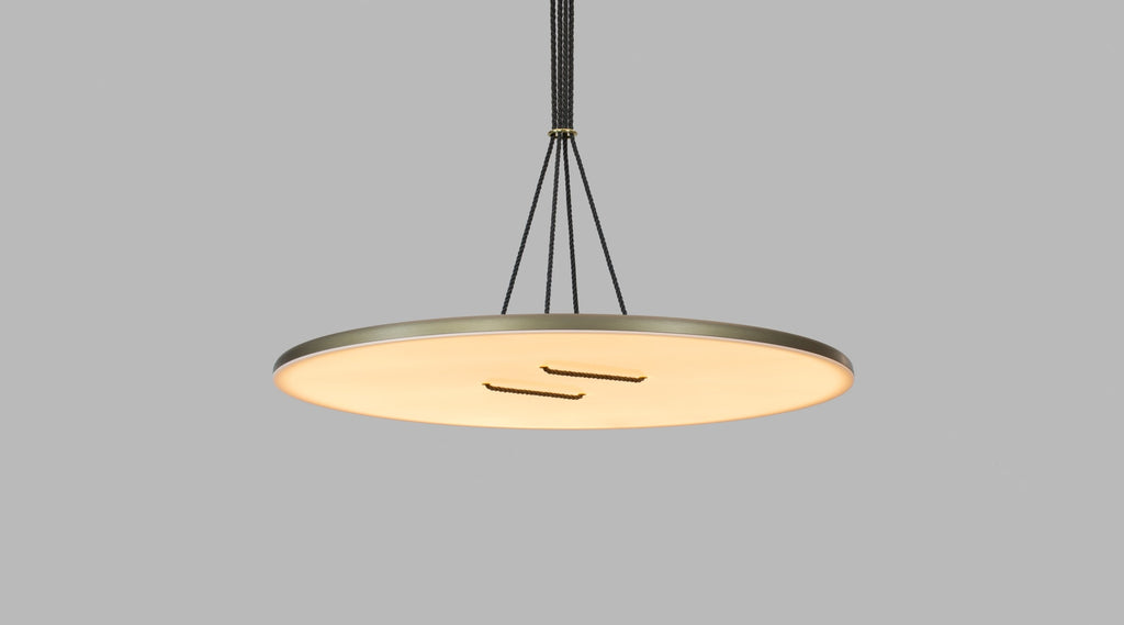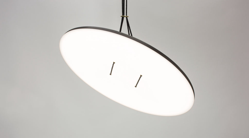 Mimicking a giant button, the broad-faced, thin profiled fixture is memorable and playful, while its surface LED casts a warm and inviting light. The unique suspension system allows the user to articulate the face towards the desired direction. Made in Canada.