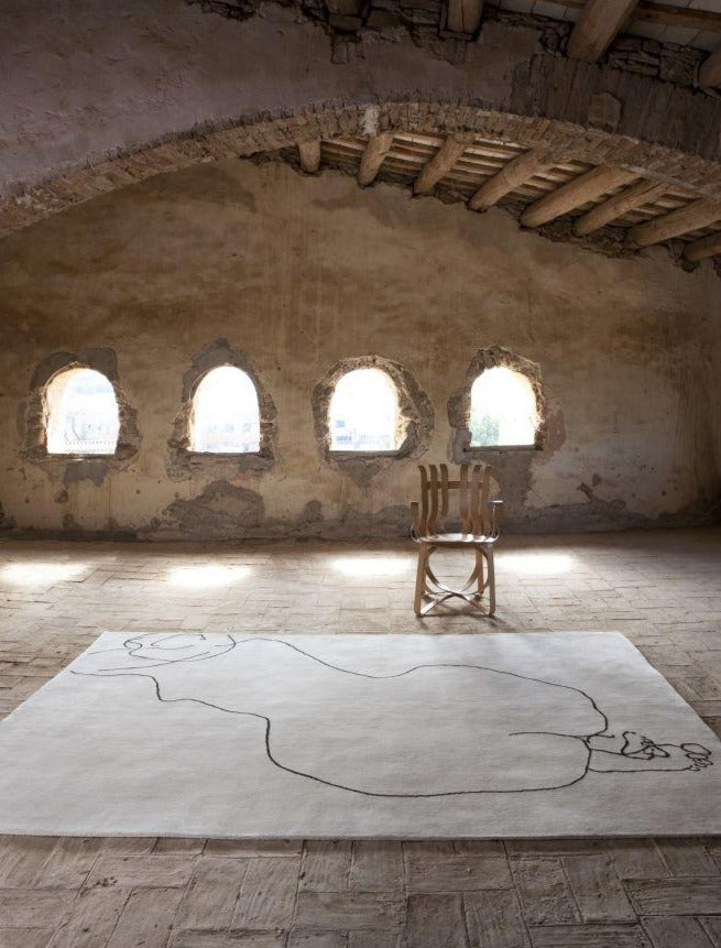 Chillida’s artistic nuances have been faithfully translated into rugs, all handmade using various techniques and fibres, such as wool, silk, and hand-spun mohair, to create different textures, showcasing the essence of his work.