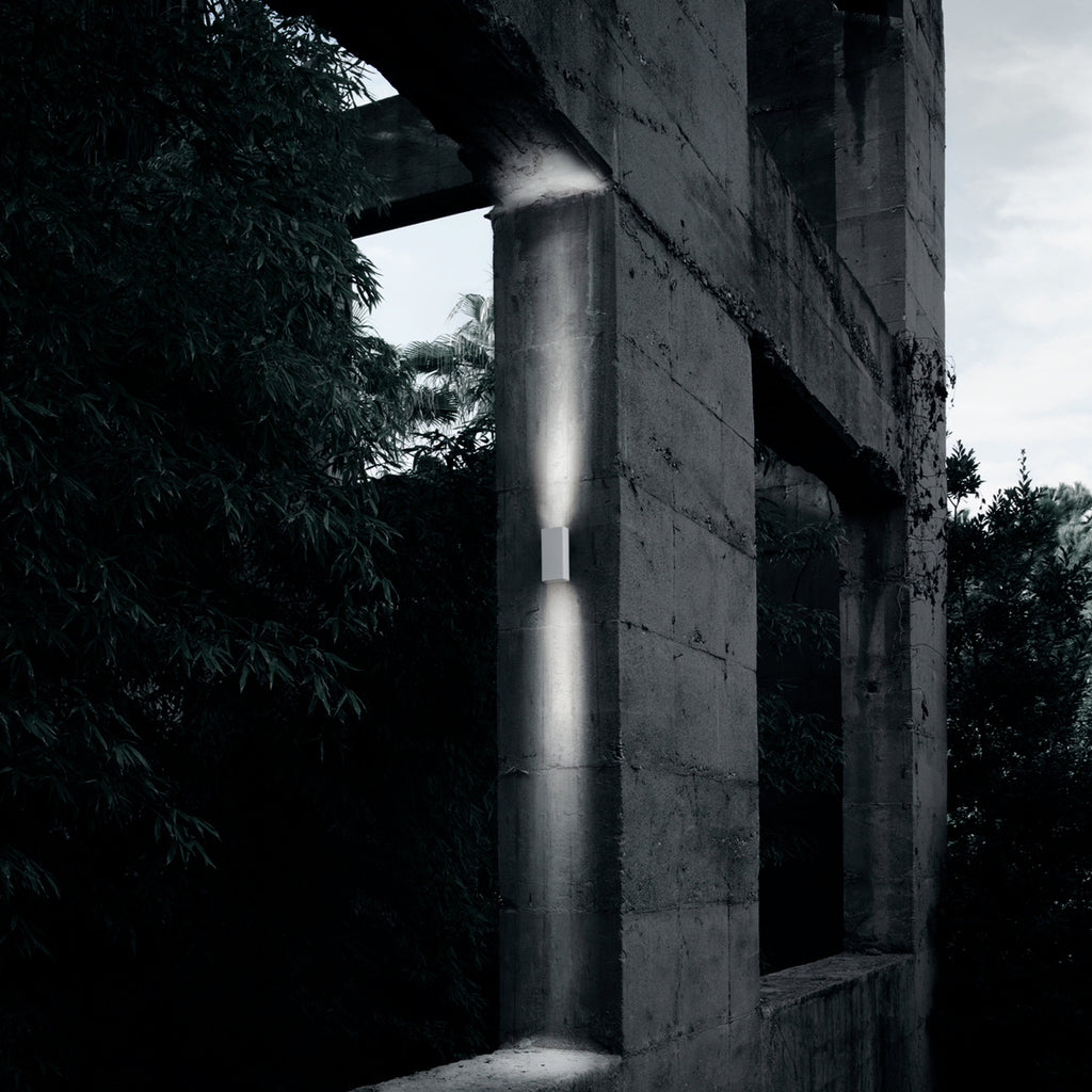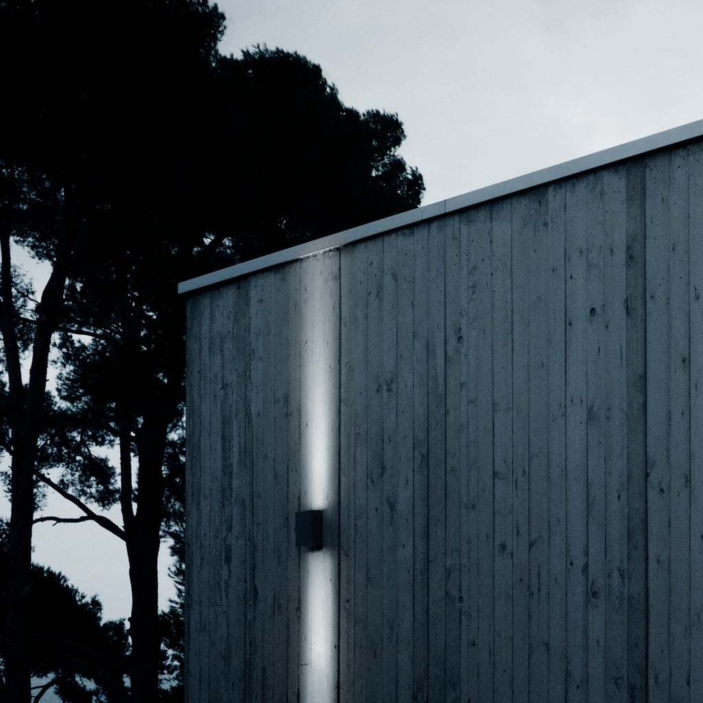 A minimalist light box reaching new heights. Designed by Piero Lissoni, Climber is an outdoor wall-mounted lighting fixture with LED light source with extends to illuminate ultimate limits. Vertically mounted, the simplistic geometric design shines up and down featuring a low copper, die-cast aluminum body. Glass-protected low optics are set to minimize glare and maximize visual comfort.