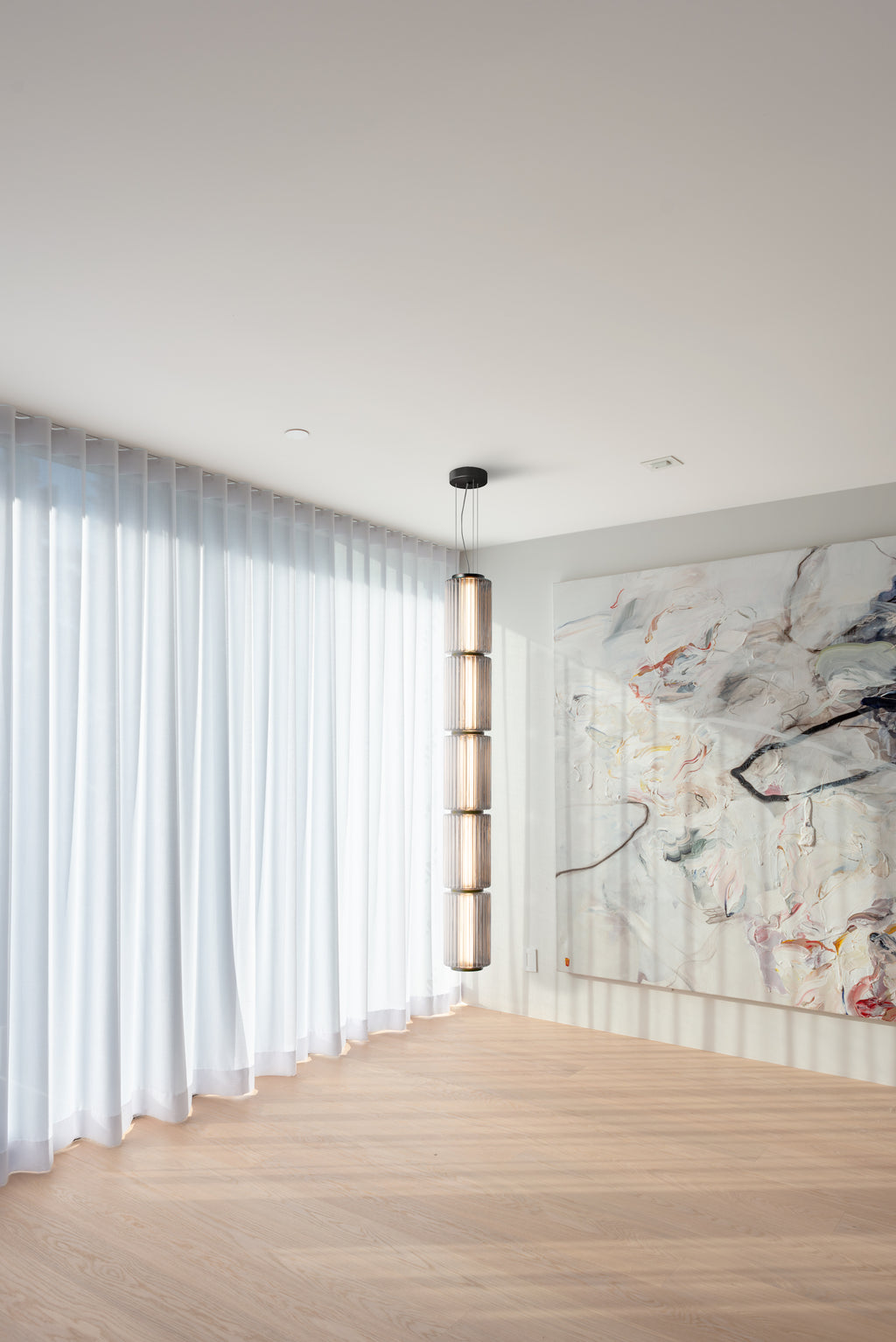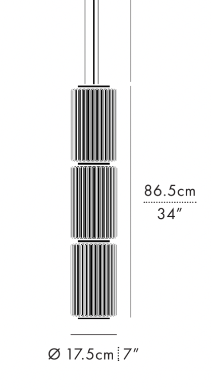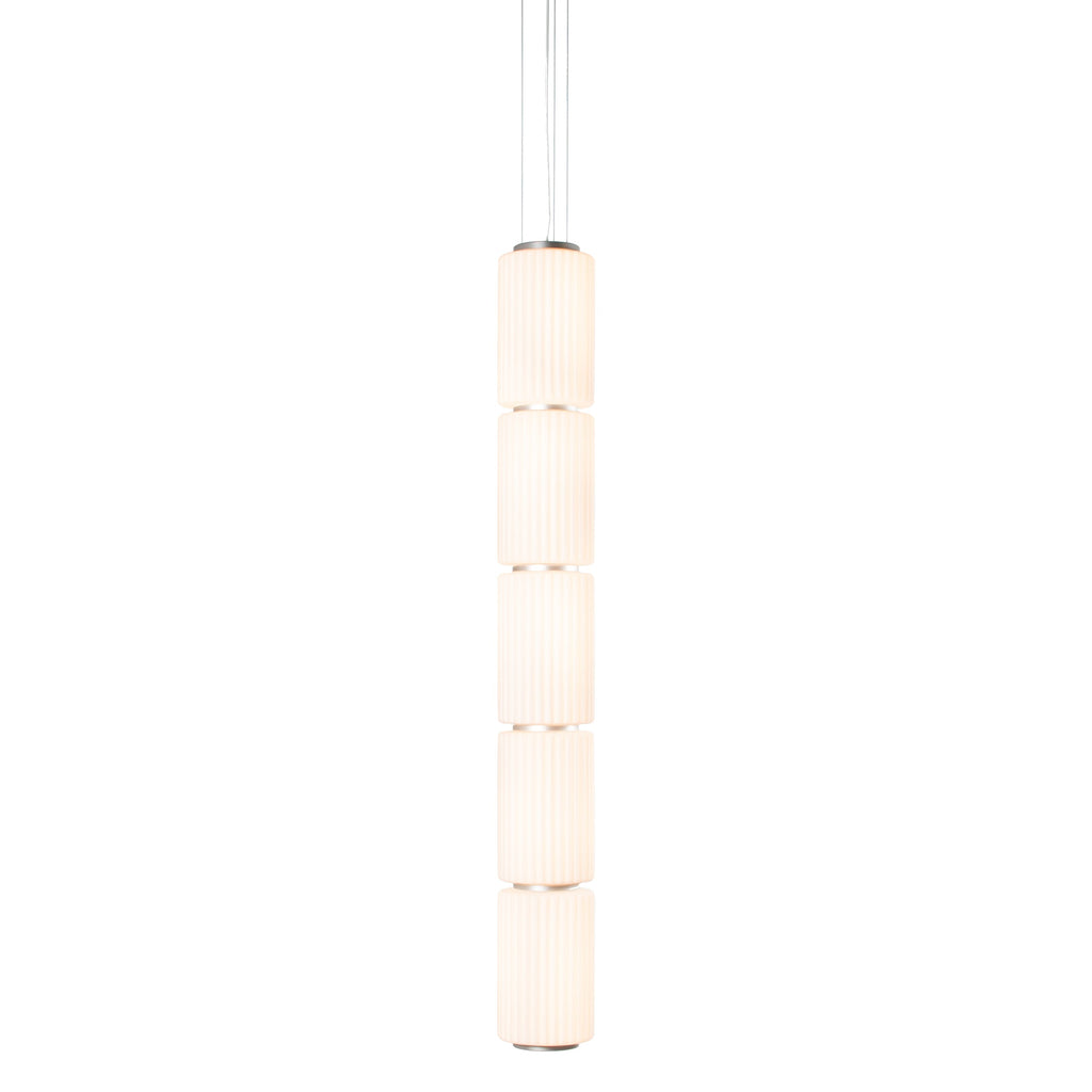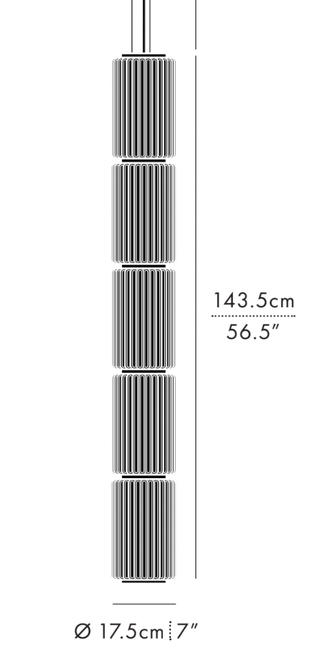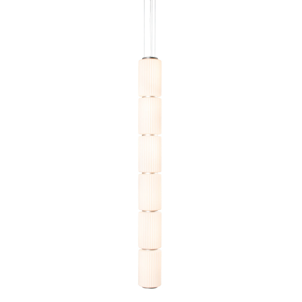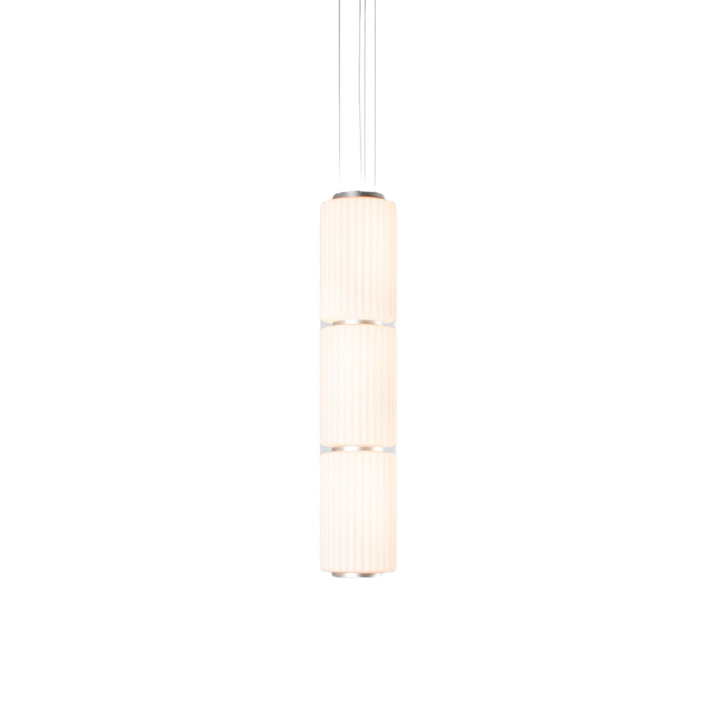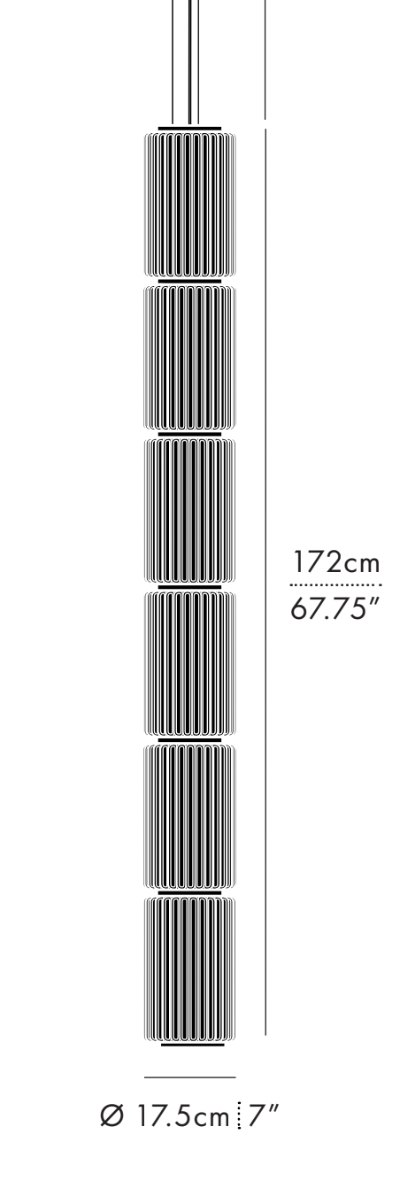 The Column conveys order, symmetry and magnificence, much like the Grecian doric columns found in classical architecture. The faceted surface of the column mimics the fluting used on buildings and temples to create a sense of rhythm, which softly diffuses the light as it radiates into the space. As it can be arranged in segments of machine mould-blown glass cylinders, it can lengthen a space vertically or expand it horizontally.