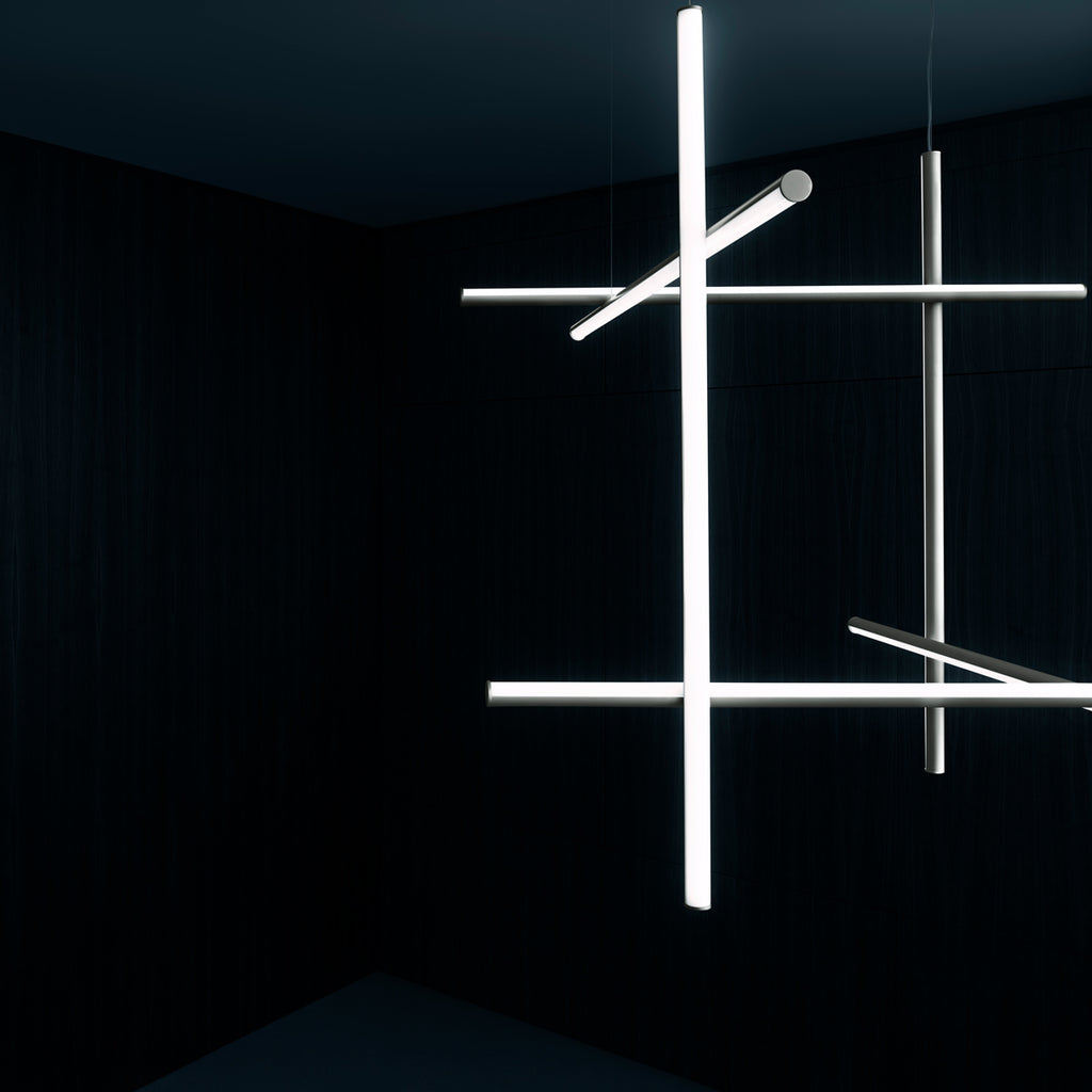Each suspended element is powered and supported by an invisible electrical and mechanical connection designed specifically to allow for the composition of the four hanging models (S1, S2, S3, S4). The Module S is also available to create semi-custom designs for large-scale installations.