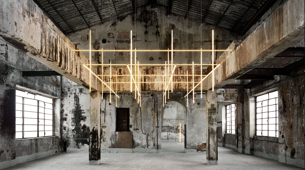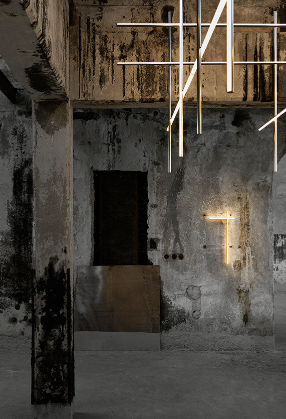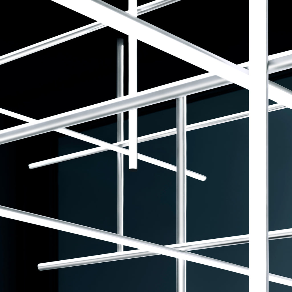 “Coordinates is a lighting system consisting of horizontal and vertical strip lights that form illuminated grid-like structures of various complexities.