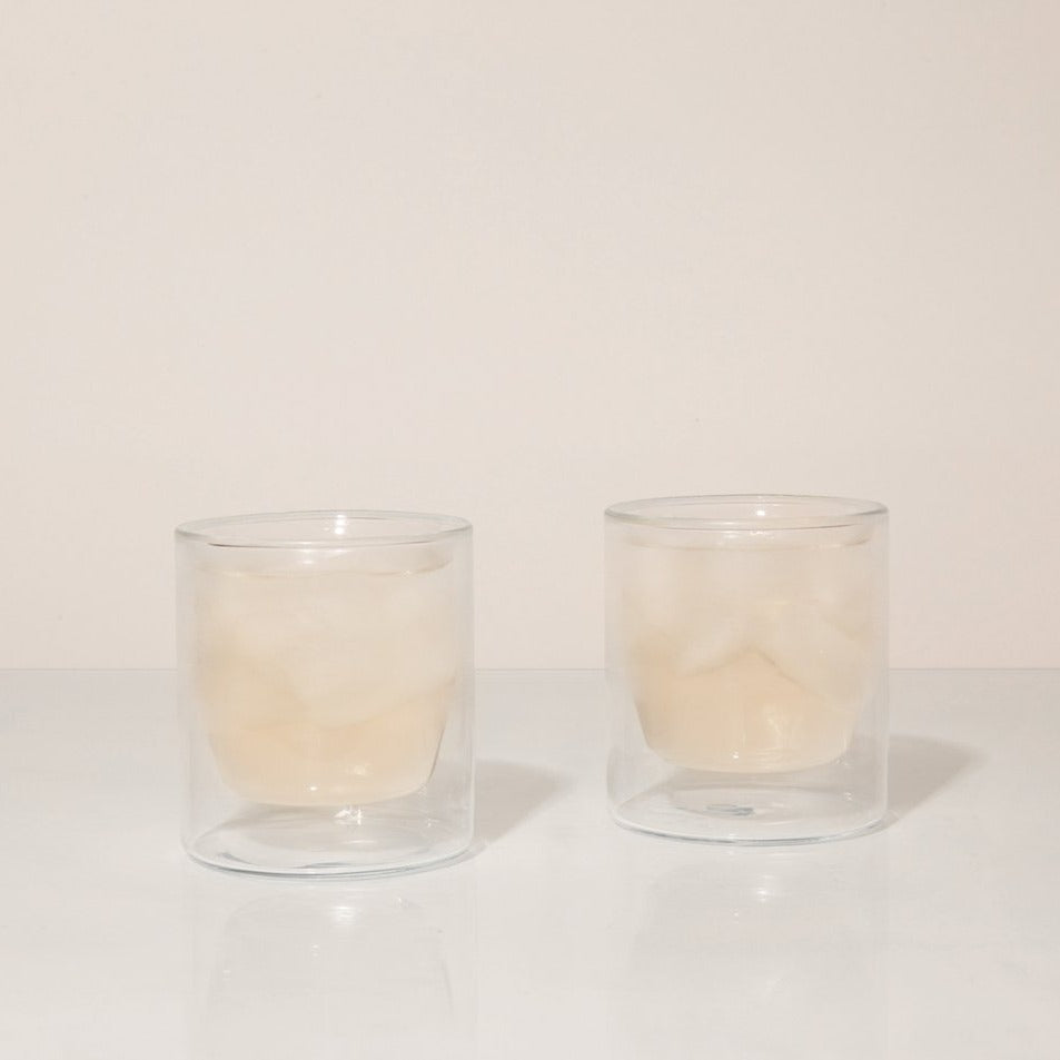 A perfect pint glass for your drink of choice. The double-wall glass provides insulation suitable for use with hot or cold drinks. Double-wall glass insulates for a cool to touch experience without the need for a handle. The form visually suspends liquid in the centre, putting your coffee, tea, cocktails or water on elegant display.
