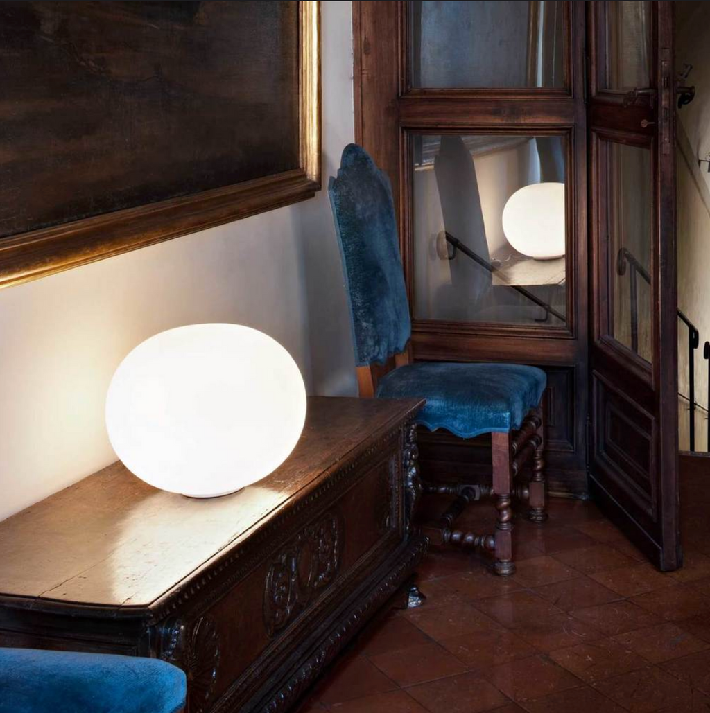 Part of the popular Glo Ball Series, the Glo Ball Basic was created in 1998 by artist Jasper Morrison to invoke the radiant calm of a full moon. This unique table lamp has a white acid-etched blown glass diffuser, and the glass body is 30% fiberglass reinforced with an injection-molded polyamide (UL-94 V2) base.