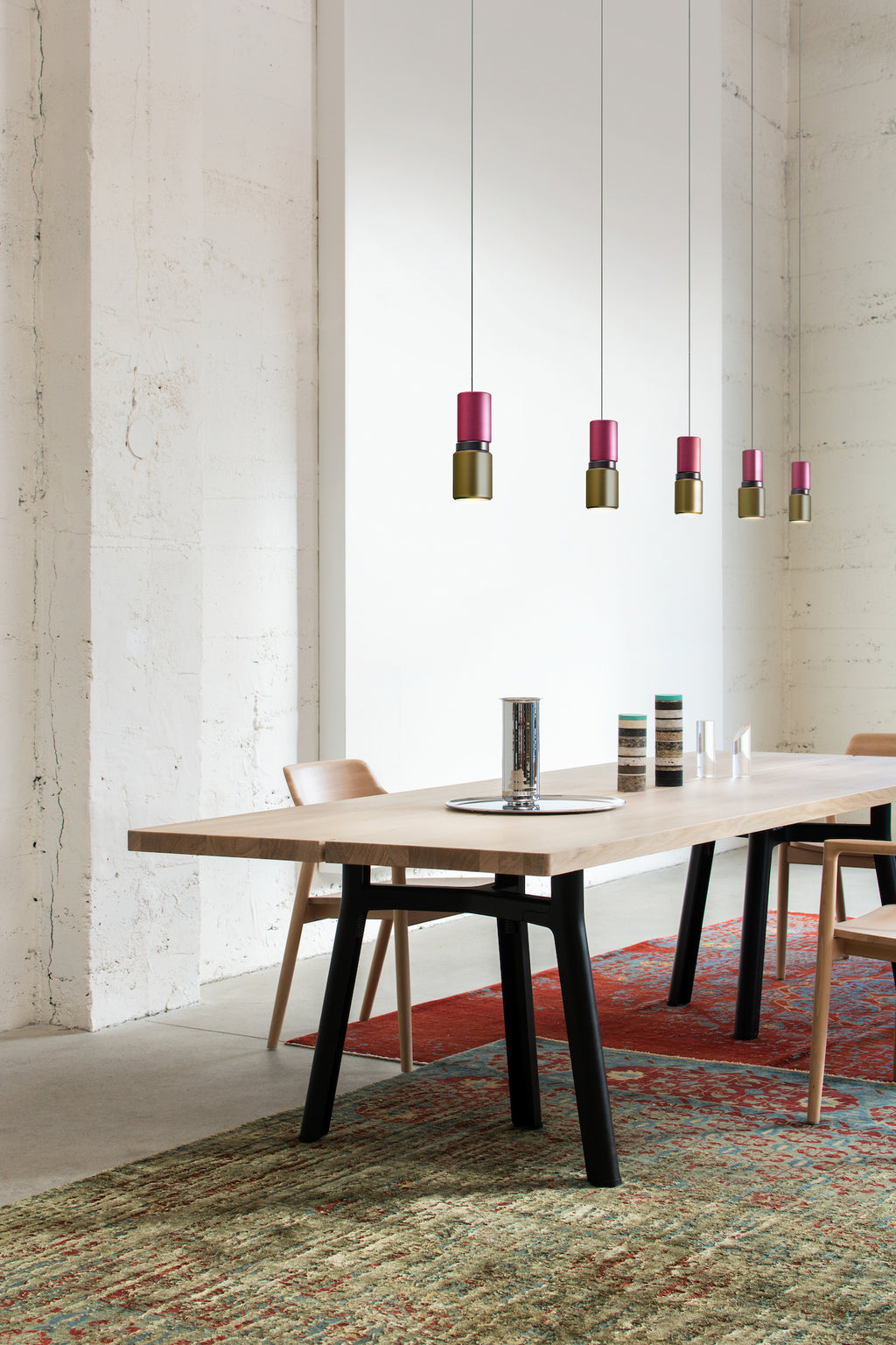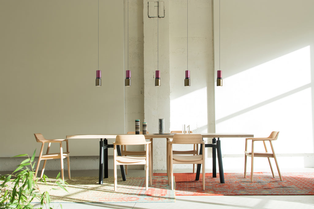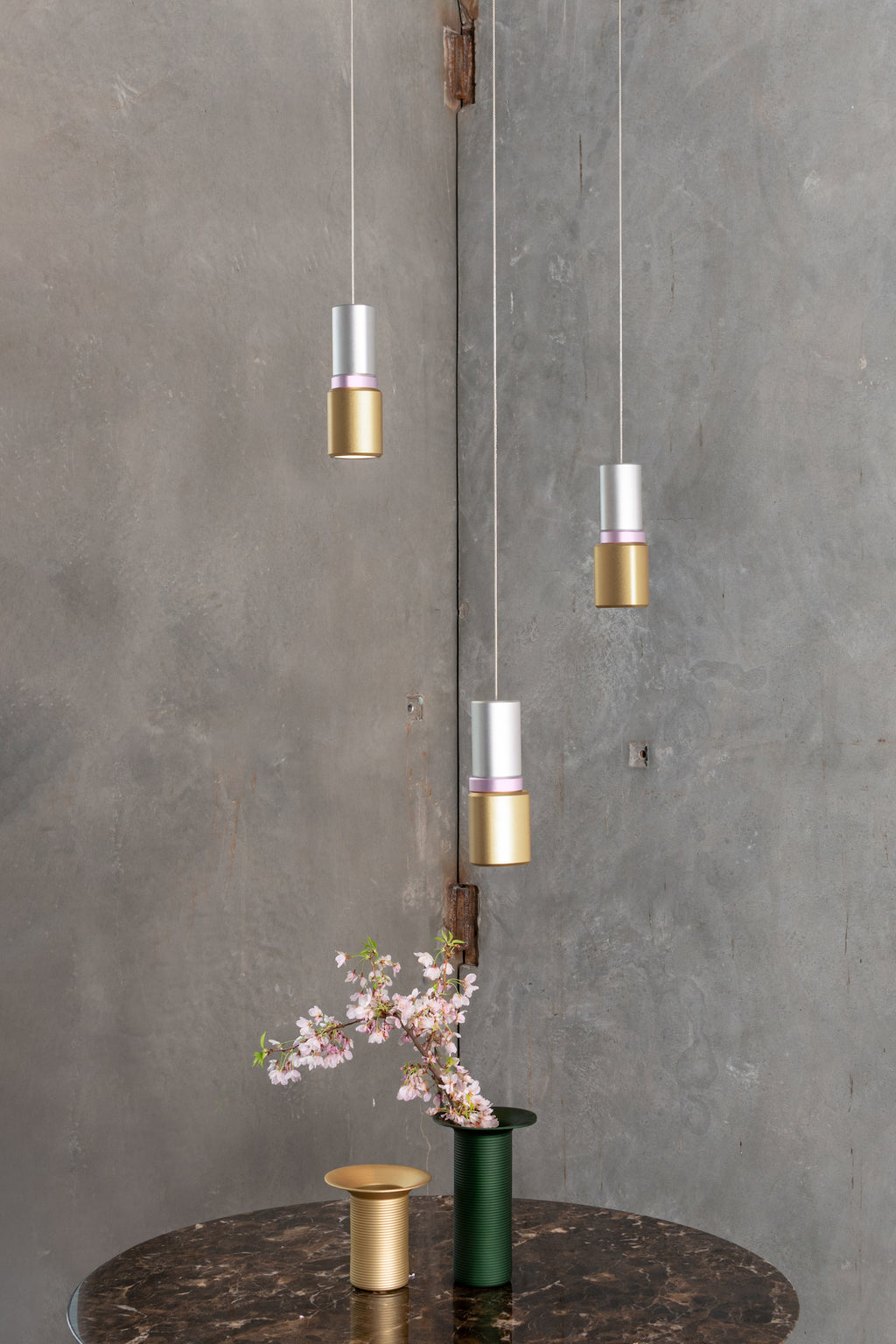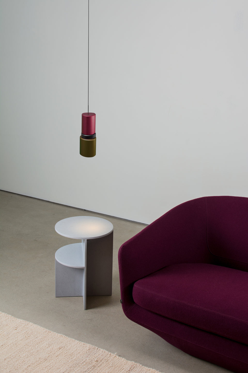 The Lobe celebrates the poetry of mechanics, articulating the rotational difference of three irregular, ovular-shaped cylinders. As the cylinders are stacked and offset from one another, they each appear to convey angular momentum arriving at a halt; the resulting composition in each fixture is ever-changing when viewed from different perspectives.