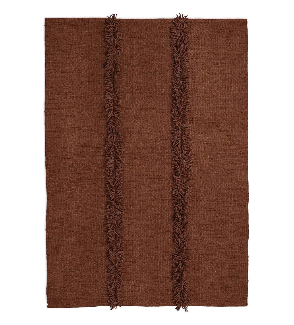 Create your own rug: choosing between two sizes, four colours, and four different finishes. You can contrast seams, add different types of fringes or opt for colourful stitches. Infinite results are possible; each detail makes a difference, ensuring your rug is unique.