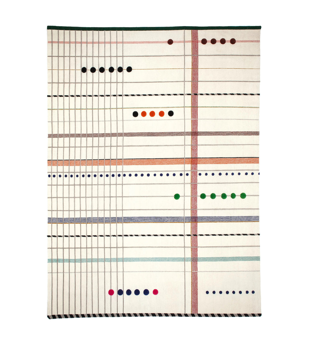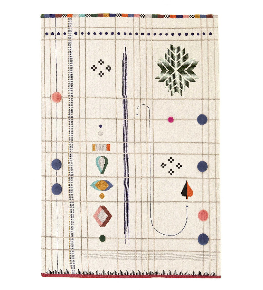 “We decided to create a series of rugs that evoke the sensual and shiny world of tribal folk embroidery of India. We wanted our collection for nanimarquina to reference the unfinished embroideries like studies of different techniques in progress, as they gradually emerge over time. The spontaneous compositions of the rugs embody the serendipity and freedom to improvise inherent in each step of a handmade piece. Joyful, irreverent and unique.” Doshi Levien