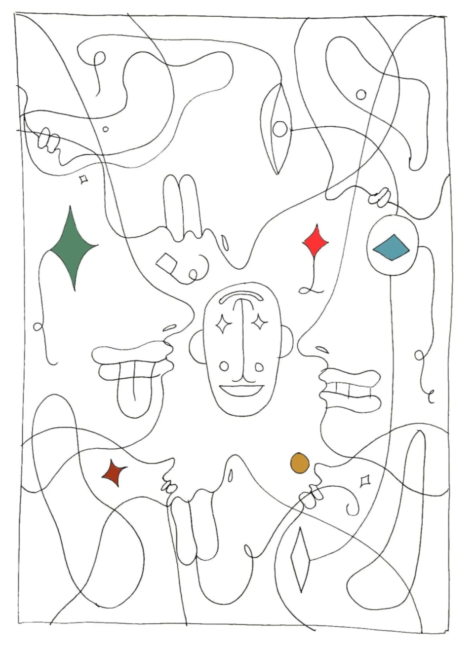 Depicted with a delicate stroke, the illustration defines the silhouettes of several imaginary characters that intertwine and coexist in a beautiful composition. Hayon subtly introduces colour through small elements brimming with personality that help to interpret each of the images. Nine faces are distributed at different angles so that the rug can be viewed from any perspective, fitting perfectly in any space.