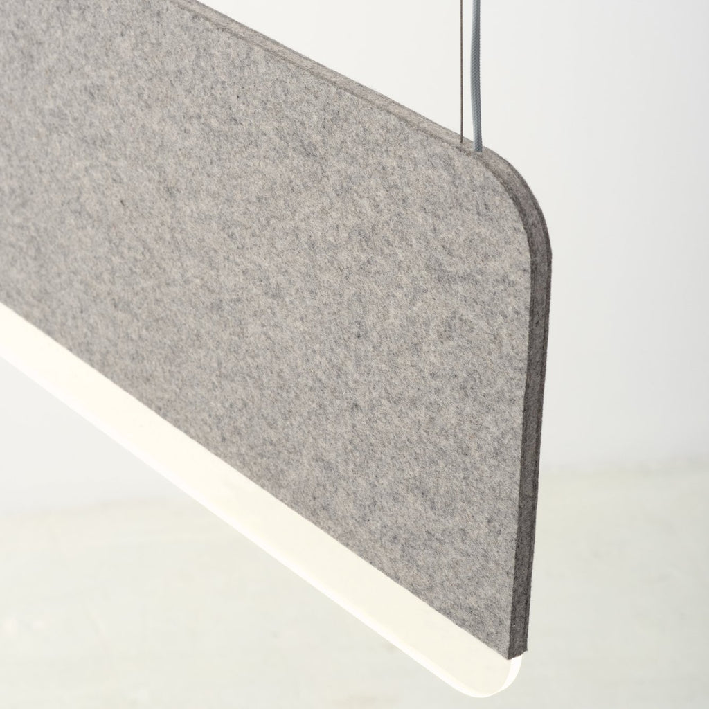 The Slab 90 pendant light combines a visually graphic presence, impossibly slim profile and acoustic dampening properties to provide an aesthetically unique and diverse light fixture which is effortlessly useful in a myriad of applications; corporate office; crowded restaurant; dining room table, and much more.