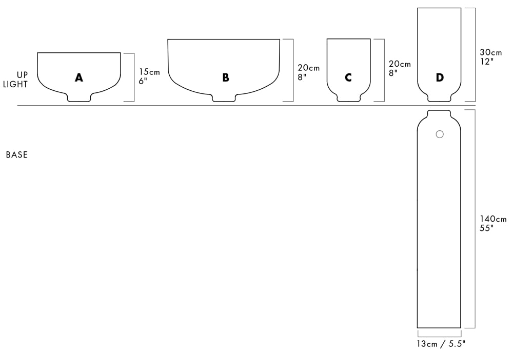 Base: 5.5" diameter by 55" tall
