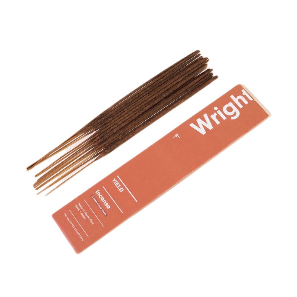 Inspired by the desert setting of the architect's Arizona home, the Wright incense pairs light floral rose with warm sandy tones. The scent brings the outdoors in and crafts natural elements into a rich and distinct composition.