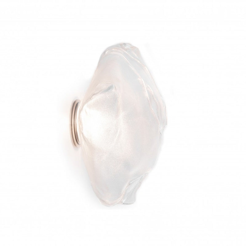 73 results from blowing liquid glass into a folded and highly heat-resistant ceramic fabric vessel. The resulting shape has a formal and textural expression intuitively associated with fabric, which becomes permanent and rigid as it cools. A xenon or LED is positioned to fill the resulting volume with diffuse light, accentuating the volumetric perception of the piece.